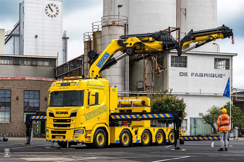 De Scania 560R B10x4*6 NB 17N, zoals hij officieel heet, is voorzien van een open laadbak en een Palfinger autolaadkraan. Hij kan echter ook als trekker ingezet worden. Modern Berging gaat de vijfasser inzetten voor het bergen van zware voertuigen in opdracht van onder andere Rijkswaterstaat, maar ook voor diverse kraan- en hijswerkzaamheden. De Palfinger-kraan met een capaciteit van 165 tonmeter is voorzien van een Fly- en een MFA-jib, samen goed voor een reikwijdte van 40 meter. Op het chassis werd een 20 ton treklier gemonteerd, waarmee zware voertuigen losgetrokken kunnen worden. De bergingstruck is af te stempelen met twee steunpoten aan de voorzijde, die met een capaciteit van acht ton per stuk zorgen voor meer stabiliteit en een grotere hefcapaciteit.
