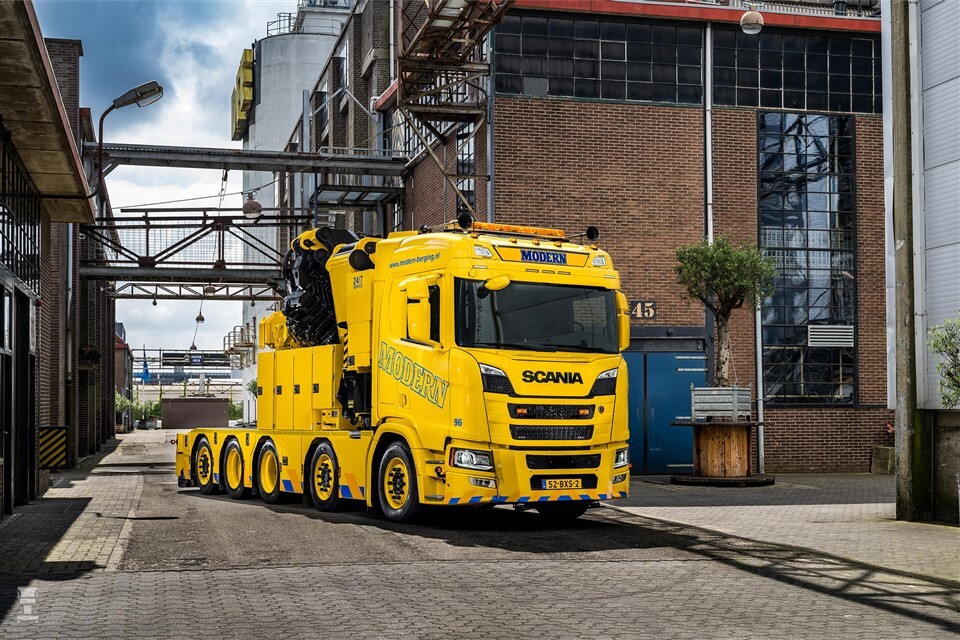 Al in 1996 nam Modern Berging zijn eerste Scania in gebruik. Het bedrijf zijn de Zweden altijd trouw gebleven. Ze zijn erg te spreken over de kwaliteit. Daarnaast oogt een Scania goed en zijn ze favoriet bij veel chauffeurs. In tijden van tekorten is dat erg belangrijk. Om het de chauffeur extra naar zijn zin te maken, is de krachtpatser uitgerust met lederen bekleding, camera’s en luchtvering rondom. Extra lampen en luchthoorns maken het geheel af.