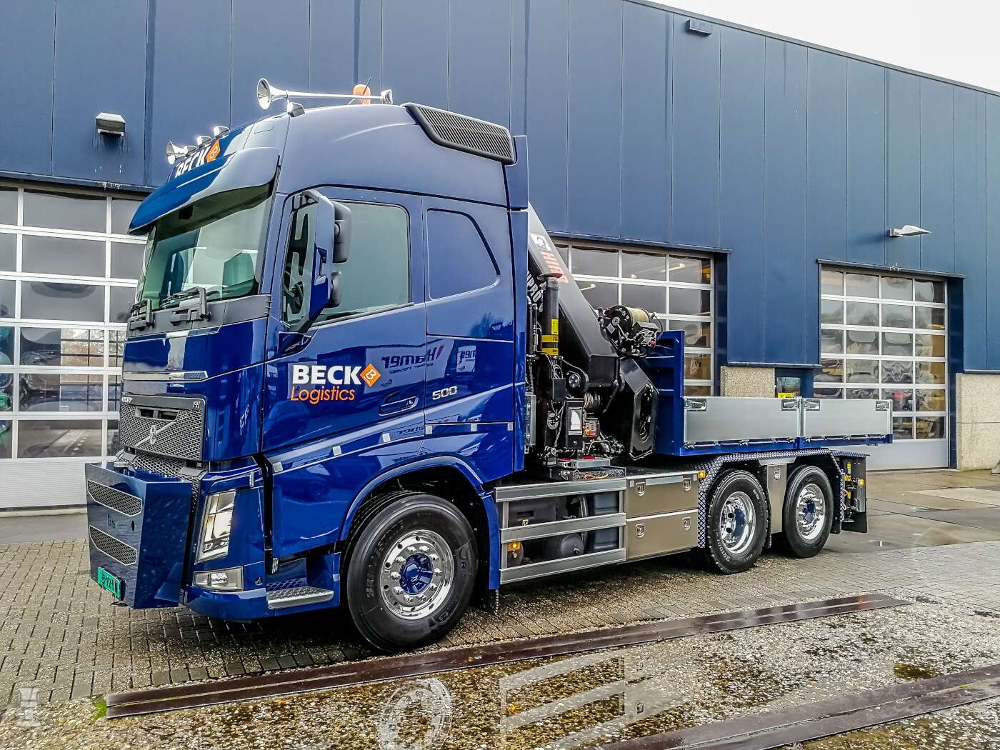 Beck Logistics heeft een bijzonder veelzijdige Volvo FH500 in gebruik genomen. De 6x2 motorwagen is namelijk tevens inzetbaar als trekker. De laadbak is namelijk afneembaar en daar onder zit een opleggerschotel. Tevens is er een vangmuil koppeling aangebracht.