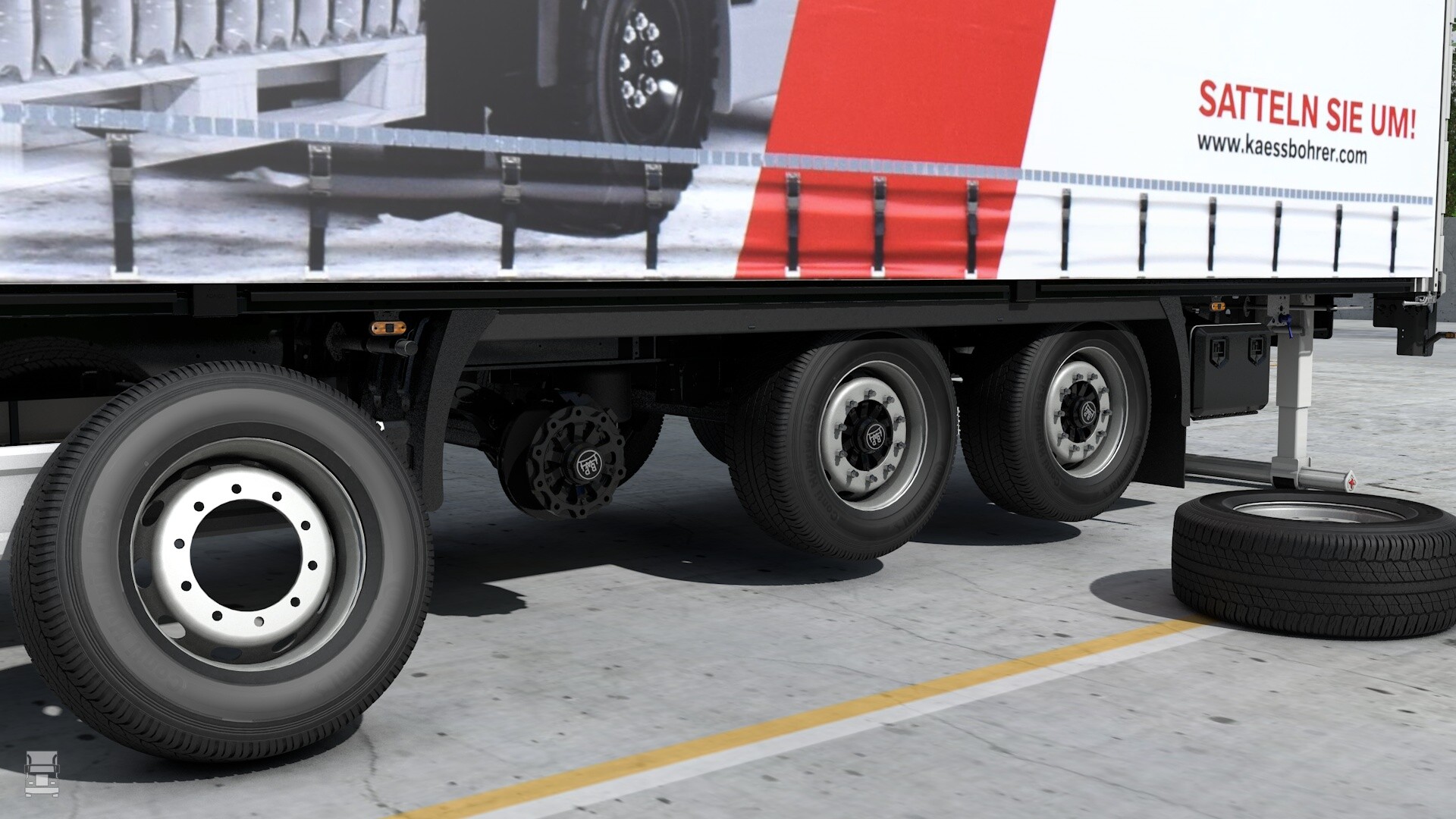Kässbohrer had met deze vinding de show willen stelen in Hannover en terecht wonnen de Duitsers hiermee een award in de categorie Components. De mogelijkheden zijn groot van deze vinding. Zo kan de neerklapbare balk van dienst zijn bij het verwisselen van een lekke band. Verder is dit een extra beveiliging bij bulktrailers, wanneer de silo achterover wordt gekipt. En natuurlijk wanneer je aan het dock staat en er heftrucks de trailer in en uit rijden. Behalve omlaag, kan de stootbalk voor bepaalde trailers omhoog opgeklapt worden wanneer er sprake is van trailers die de veerboot op moeten, of op een treinwagon.