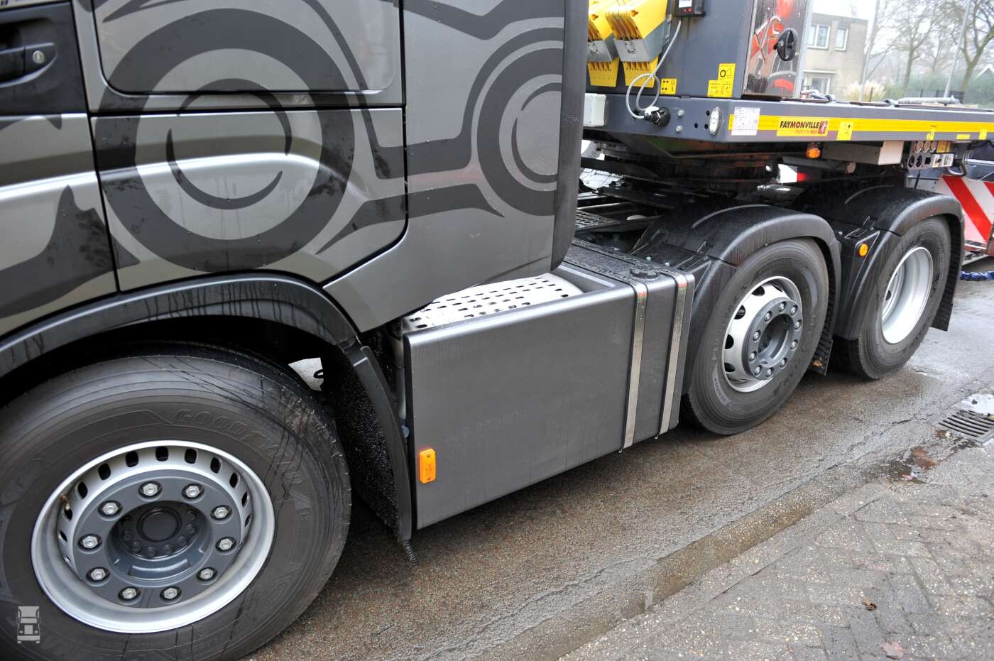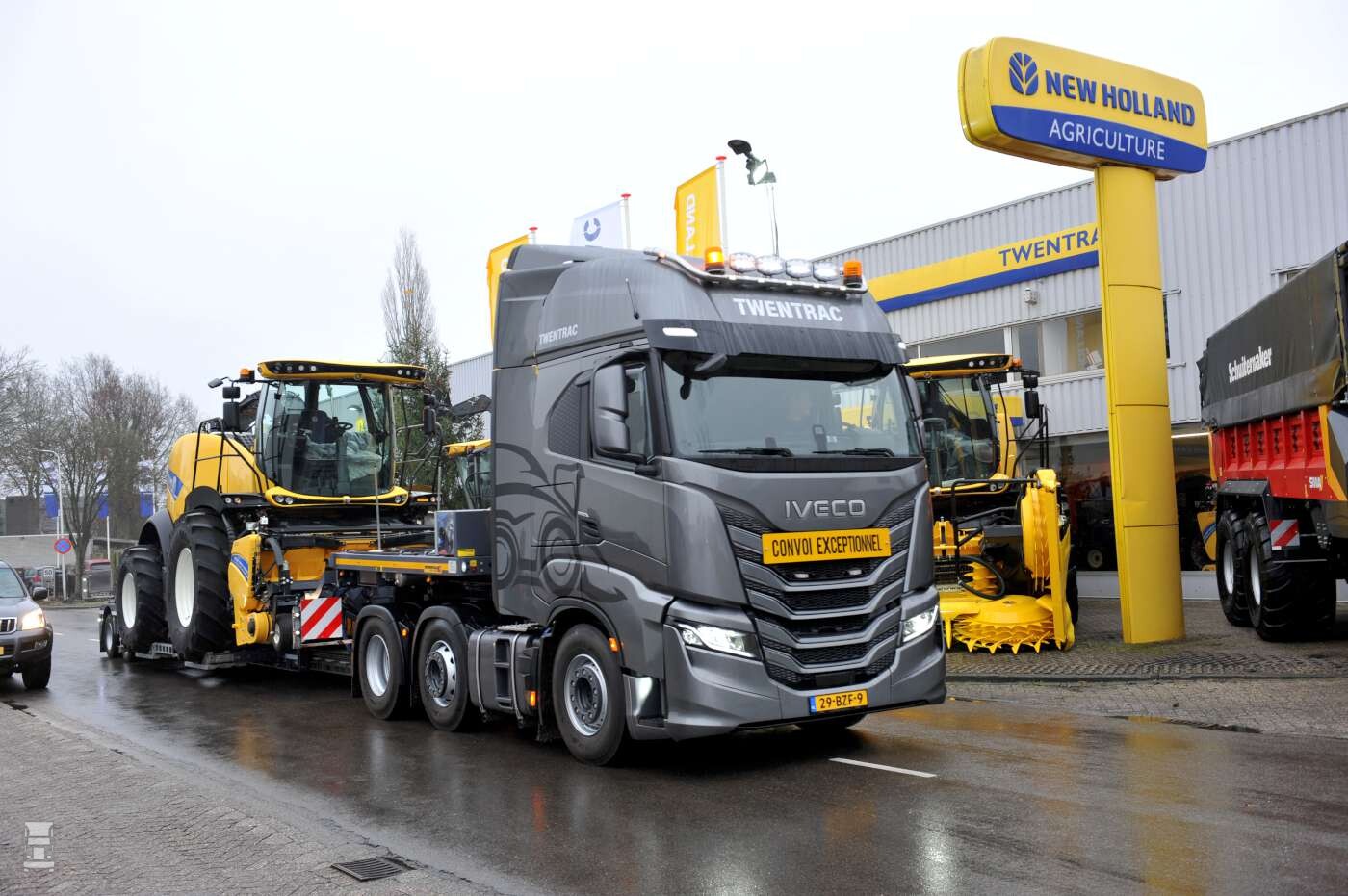 Chauffeur op de nieuwe IVECO is Raimon Kleinlugtenbeld. Hij heeft veel ervaring met landbouwmachines en is erg trots op ‘zijn’ nieuwe IVECO. Raimon:,, Wij waren al een tijdje aan het kijken wat voor ons de ideale combinatie zou zijn en we hebben dan ook met verschillende merken demo gereden. Daarbij ging mijn voorkeur uit naar een IVECO, vooral het nieuwe interieur van dit nieuwe model maakt het plaatje compleet’’. Achter de nieuwe IVECO is een twee- assige, hydraulisch gestuurde en uitschuifbare Faymonville Mega dieplader gekoppeld. De smal bed dieplader heeft een hydraulische nek en vele opties die speciaal zijn ontworpen voor het vervoer van verschillende soorten machines. Zo zijn er bijvoorbeeld inhaakbare wielkuilen gemonteerd aan de nek.