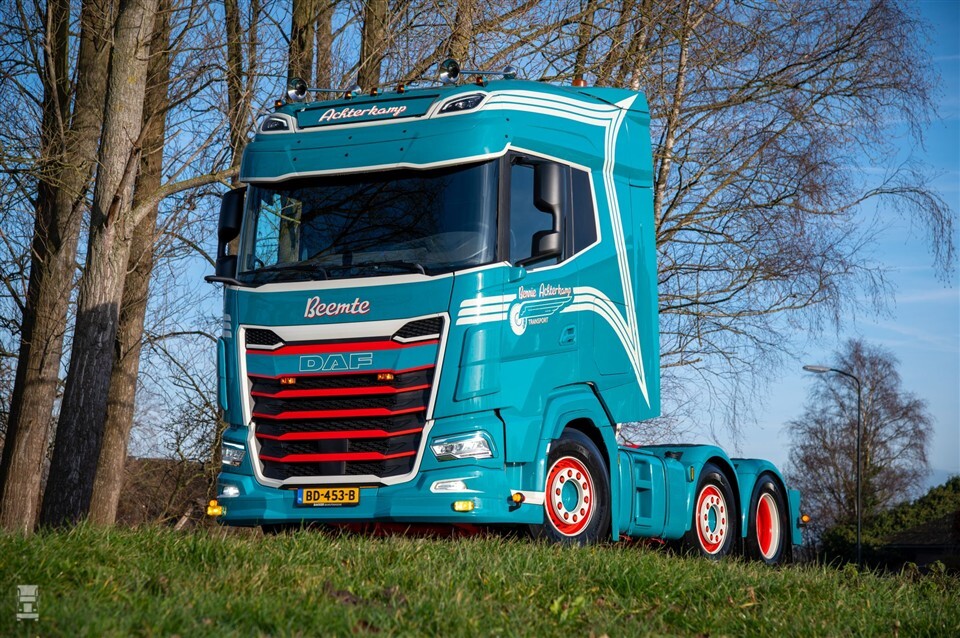Bennie Achterkamp Transport uit Beemte heeft vorige week de eerste van twee nieuwe DAF trekkers in gebruik genomen. Het betreft een XG FTG met DAF’s sterkste diesel onder de cabine. Deze levert een vermogen van 530 pk. De nieuwe aanwinst ziet eruit om door een ringetje te halen. De bedrijfskleuren staan erg goed op de XG. Ze zijn opgebracht door Sluikhuis Automotive in Apeldoorn. Hertgers Reclame verzorgde de bestickering.