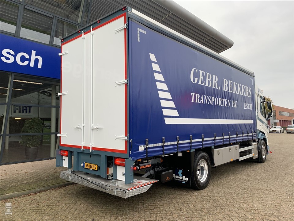 Uiteraard kreeg de nieuwe DAF de mooie bedrijfskleuren van Gebr. Bekkers, die werden opgebracht door Olie&zo Schadeherstel uit Schijndel. De laadbak met schuifzeilen komt van Carrosseriefabriek Roefs Middelbeers. De aankleding met onder andere een dubbele set luchthoorns is verzorgd door Truckland Den Bosch. De nieuwe DAF werd passend onthuld op het jubileumfeest van chauffeur Henri. Feestje compleet!