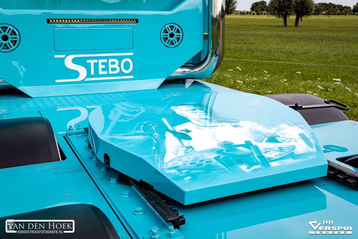 De special paint afbeeldingen zijn heel fraai subtiel aangebracht in bijpassende tinten waardoor deze niet overheersen. Echt aandacht voor detail, waardoor de lijnen van de truck mooi overeind blijven. Kortom, een plaatje, deze nieuwe DAF XG+ van Stebo!