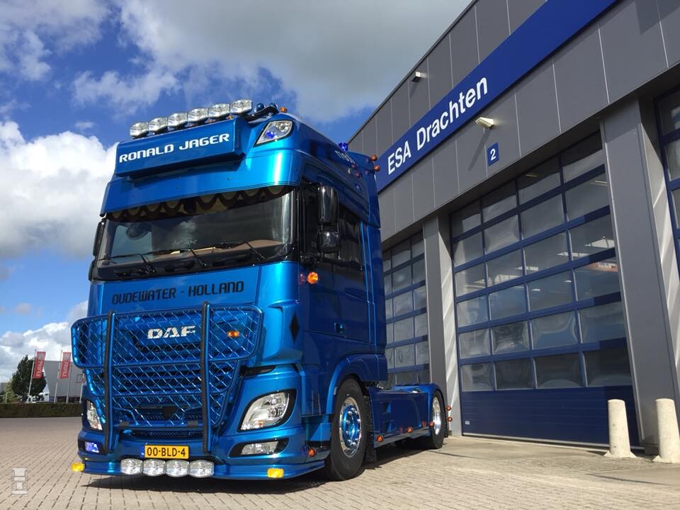 ESA Trucks Nederland in Drachten leverde een fraaie nieuwe DAF XF 480 FT Super Space Cab af aan Ronald Jager Transport. De in 'Jamaica Blue' gespoten trekker is voorzien van het hele boekje aan DAF opties en een compleet heringericht interieur.