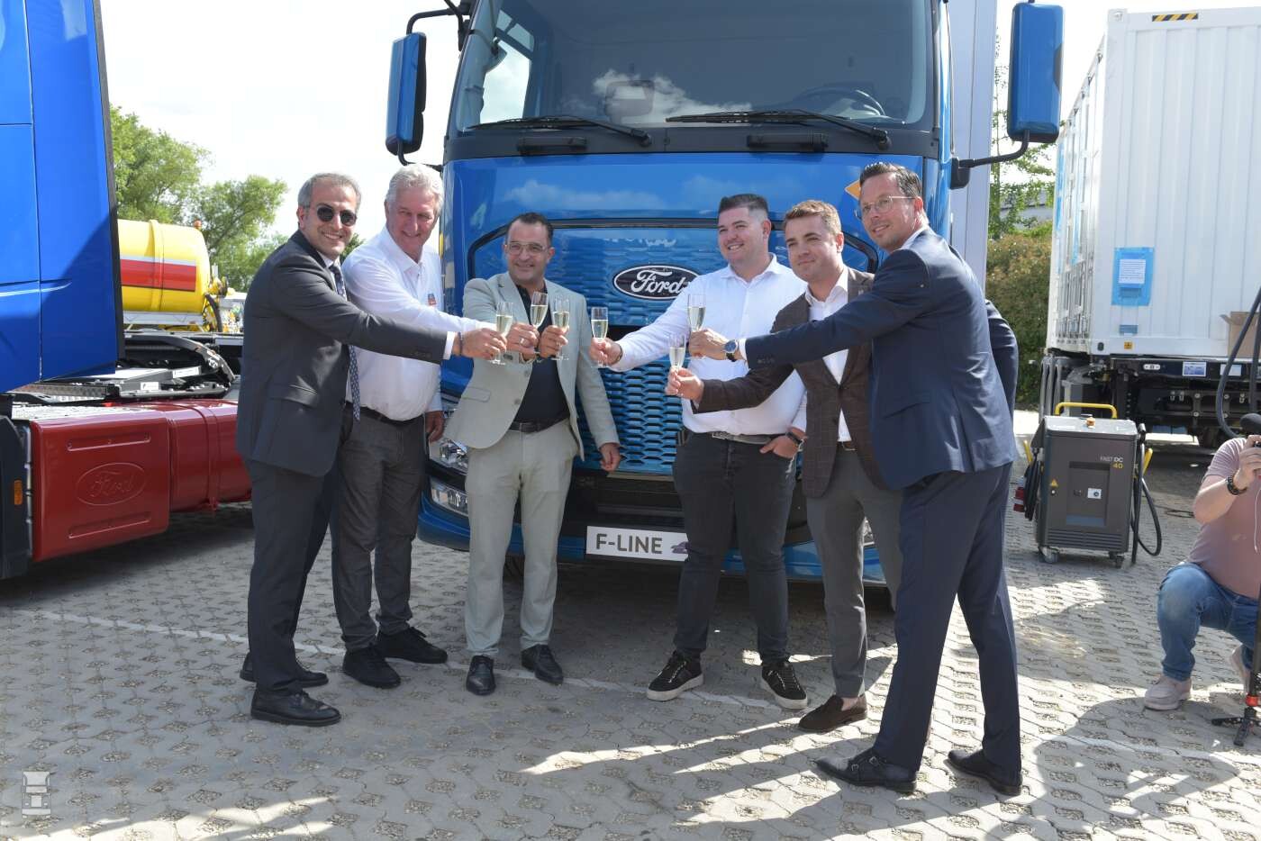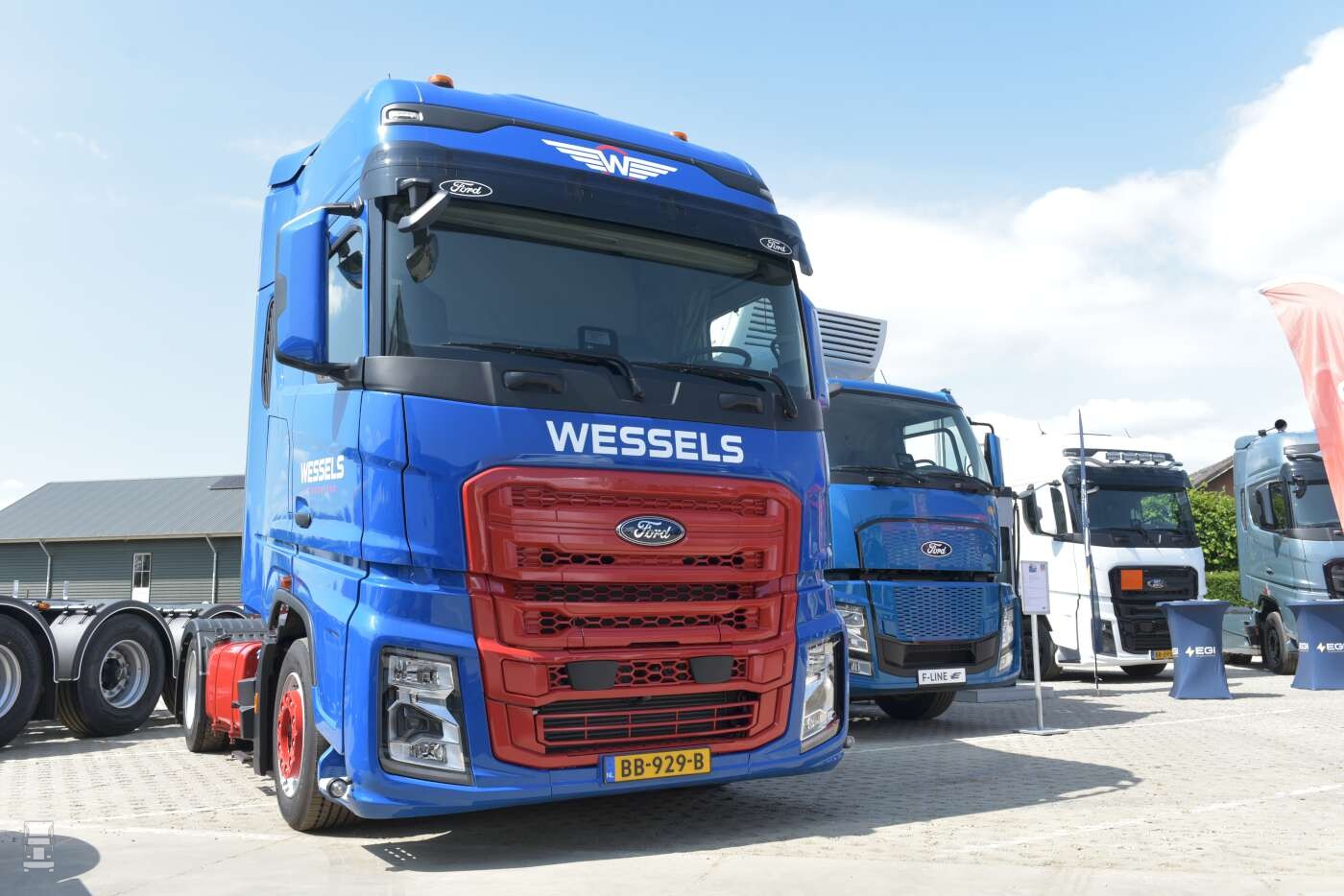 De F-Line is het distributie model van Ford Trucks. Tijdens de presentatie wordt dit model niet genoemd, maar de trucks stonden wel voor de deur. Navraag leert dat F-Trucks in Nederland niet veel verwacht van deze range, gezien het toch wat gedateerde ontwerp. Voor de elektrische uitvoering, de F-Line E verwacht F-Trucks wel belangstelling. Sterker nog, de handtekening voor de levering van de eerste elektrische bakwagen werd getekend door ATS Transport in ons bijzijn. De F-Line electric is leverbaar als 4x2 en 6x2 bakwagen in verschillende wielbasis varianten. Daarmee is de F-Line E goed voor 19 ton als 4x2 en 27 ton als 6x2. De 4x2 is voorzien van een 294 kWh accupakket waarmee volgens opgave 250 kilometer gehaald wordt. De 6x2 heeft 392 kWh aan boord, goed voor 300 kilometer volgens opgave van Ford Trucks.