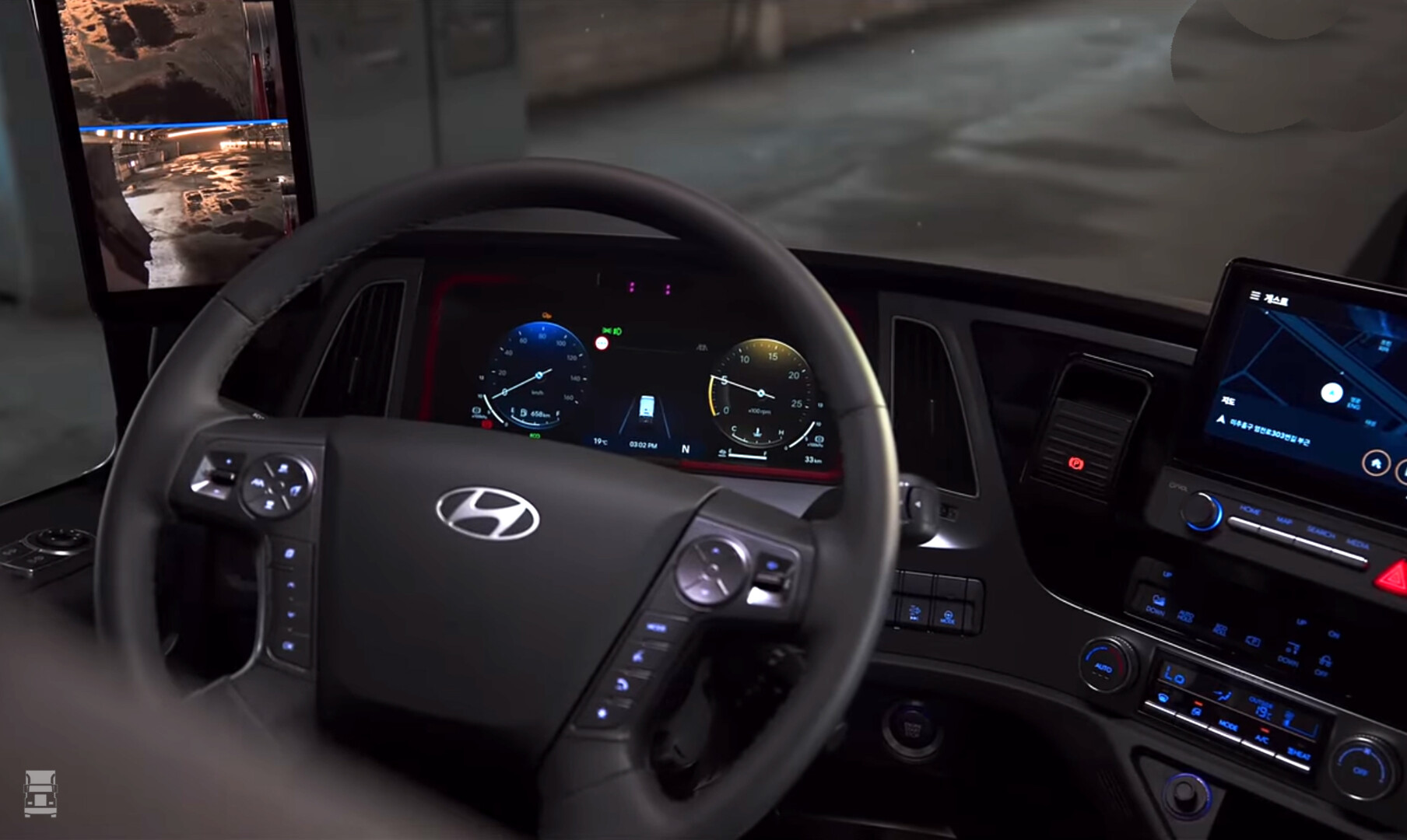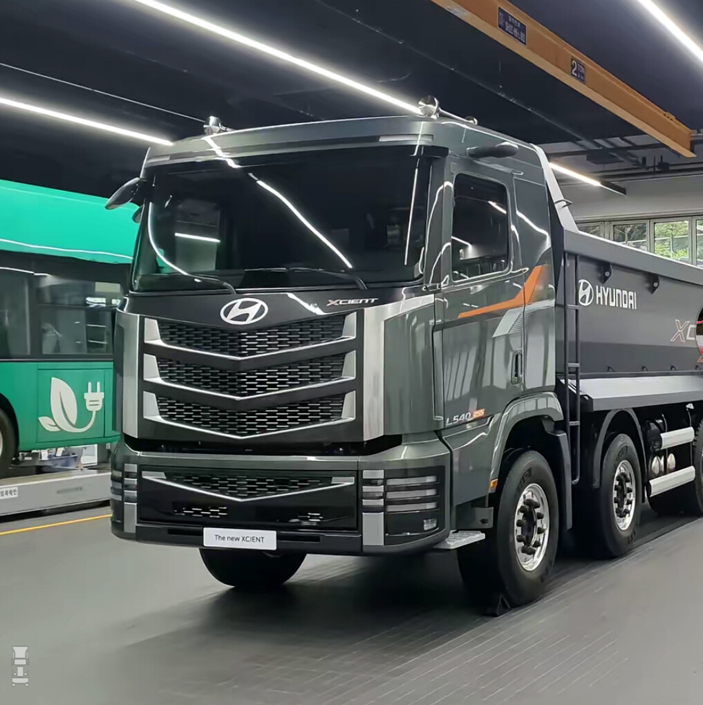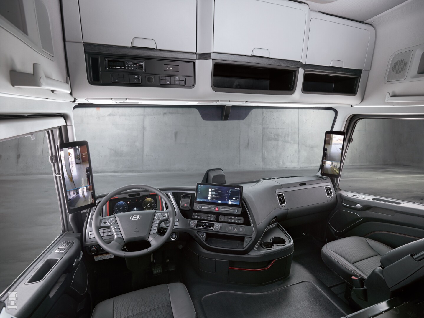 De nieuwe Xcient heeft een opvallend modern uiterlijk, camera’s in plaats van spiegels en een fraai, digitaal dashboard. Het meest bijzondere is de V- vormige grille met geavanceerde LED koplampen. Strakke lijnen domineren het front maar ook de aerodynamica is sterk verbeterd volgens Hyundai.
