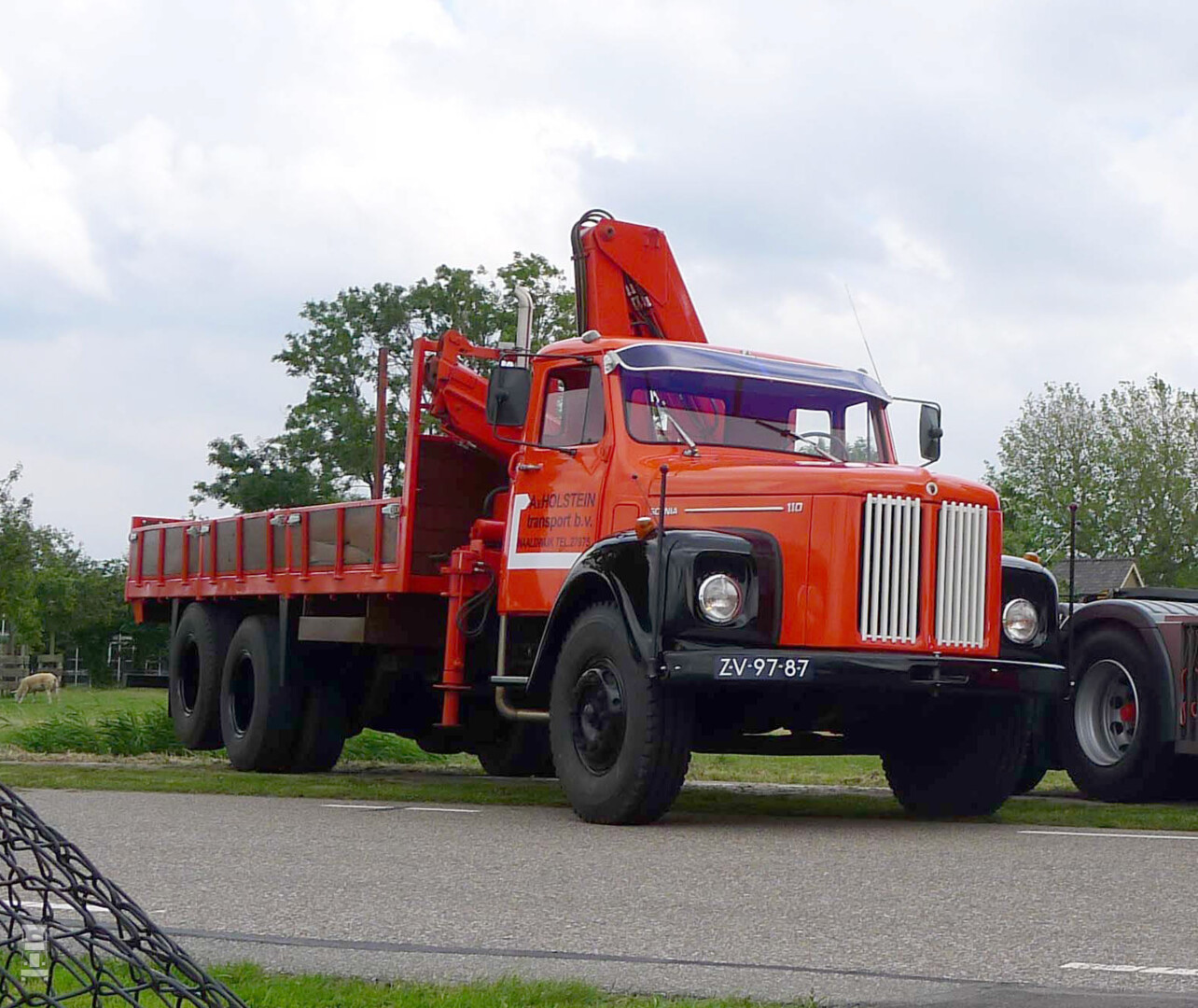 De aflevering van de nieuwe truck viel min of meer samen met een andere feestelijke gebeurtenis bij Van Holstein. “Mijn vader begon ooit op een Scania LBS110. Die is natuurlijk op een gegeven moment verkocht. Maar een paar jaar geleden vonden wij de auto terug in Barneveld. Hij was wel enorm gekannibaliseerd voor onderdelen maar toch heb ik hem gekocht en hem geheel in de oude staat teruggebracht. Daarvoor hebben ook wij overal nog oude LBS 110 wrakken gekocht die als donor konden dienen. Hij was net klaar toen de nieuwe R500 kwam. Het mooiste aan het voertuig vond ik dat de originele motor er nog in stond. Dat is toch het kloppend hart van een truck. Stel je voor: 49 jaar oud en we hoefden hem niet eens uit elkaar te halen want hij loopt nog als een zonnetje! Als eerbetoon aan mijn vader hebben we een afbeelding van de LBS110 op de nieuwe R500 laten airbrushen. Wat ik verder met de oldtimer ga doen? Niets. Gewoon zo nu en dan een lekker stukje toeren aan hetzelfde stuurwiel waar mijn vader ook nog achter gezeten heeft. Prachtig toch?”