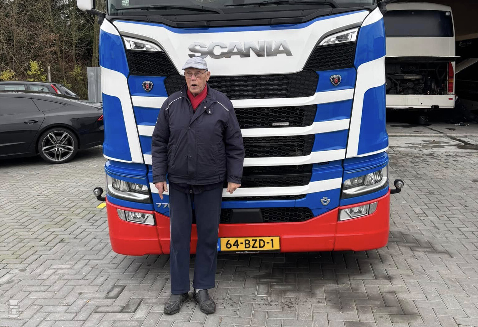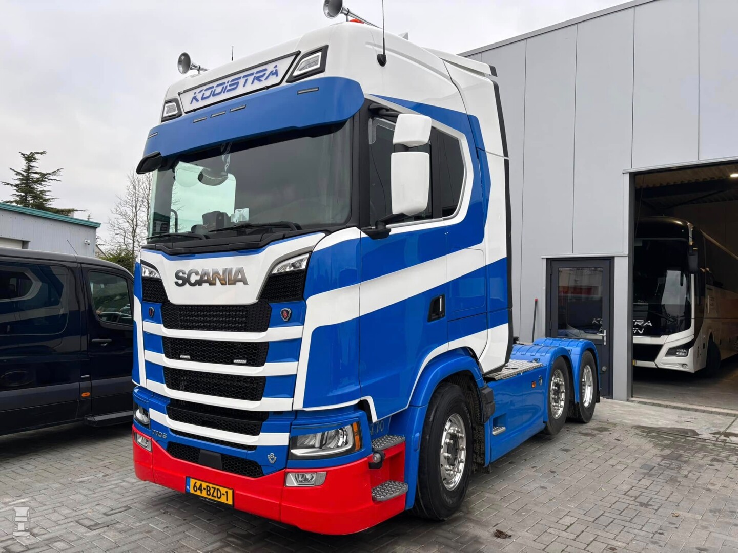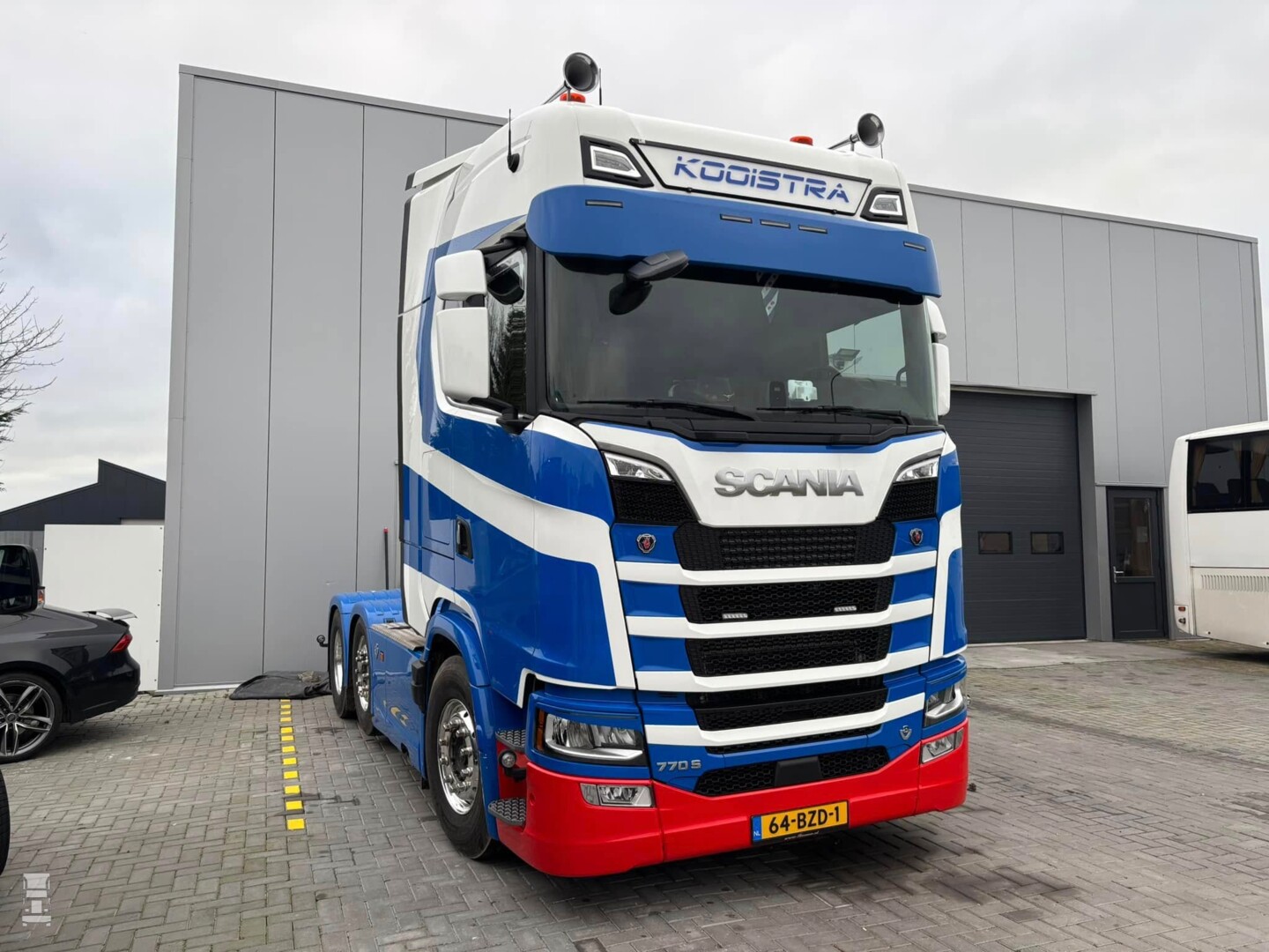 Kooistra was de laatste jaren vooral actief met touringcars onder de naam Kooistra Reizen, maar het transportbedrijf is onlangs uitgebreid met het topmodel van Scania, een 770S Highline. De stoere drie- asser is, afgezien van de extra grote zonneklep strak gehouden maar is wel uitgevoerd in de oude kleuren van het bedrijf. De heer Kooistra, inmiddels 91 jaar jong, nam de sleutels van de nieuwe Scania in ontvangst. De truck werd geleverd door Scania dealer Rinsma.