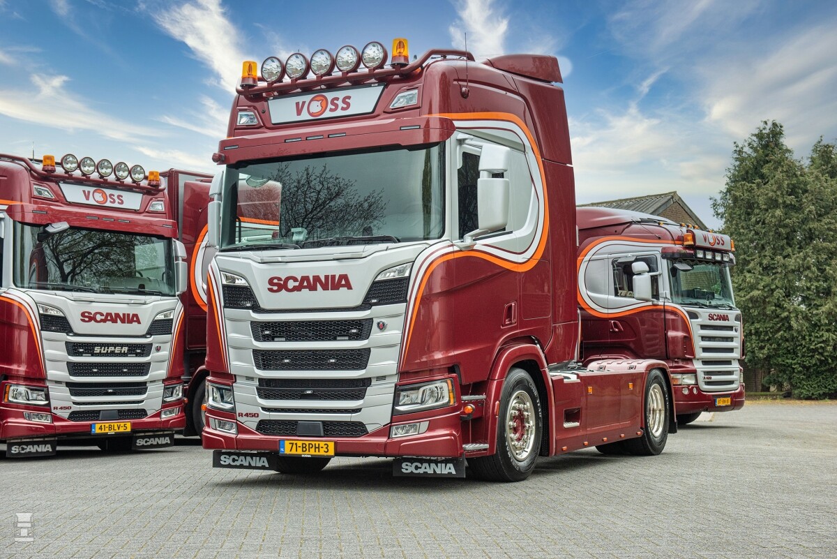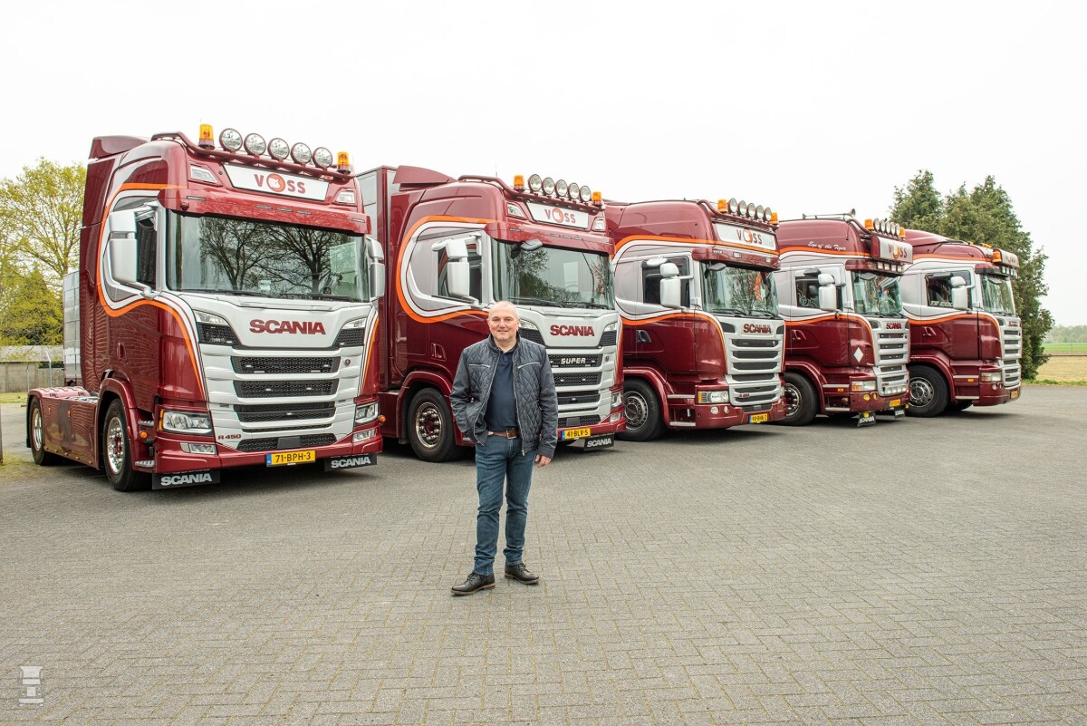 Wilbert Voss zegt zelf dat hij zijn hele leven al besmet is met het Scaniavirus. “Dat is goedaardig hoor. Daar hoef je niet voor binnen te blijven. Ik had dat al als kleine jongen. Toen mijn vader een nieuwe auto kocht, zat hij te twijfelen tussen twee merken. Ik mocht natuurlijk niets zeggen maar hoopte toch zó dat een Scania zou worden. Wat was ik blij dat hij hem kocht. Ik heb wel eens door een overname een truck van een ander merk op het erf gekregen. Maar die heb ik nooit lang gehouden. In dit werk is een Scania ideaal. Mijn oudste truck is een R500 V8 uit 2009. Daar staat 1,6 miljoen op de teller en we hebben er nog nooit problemen mee gehad. Een Scania heeft voor mij precies de juiste uitstraling en hij is stevig, duurzaam en betrouwbaar. Wij willen met weinig trucks veel omzet draaien. Dan moeten de auto’s dag en nacht rijden en betrouwbaar zijn.”