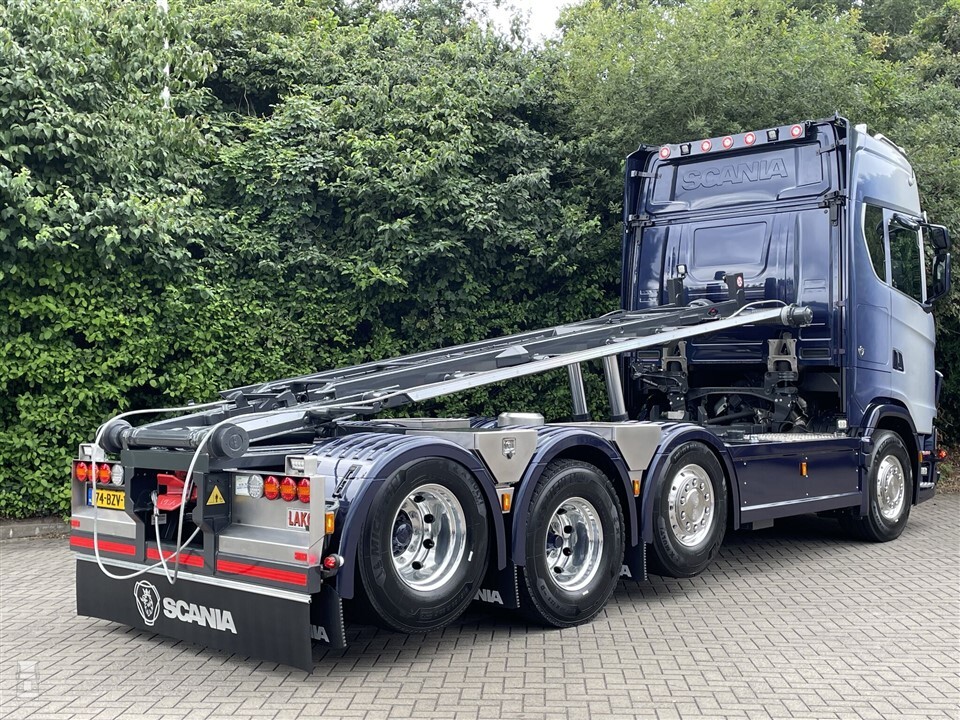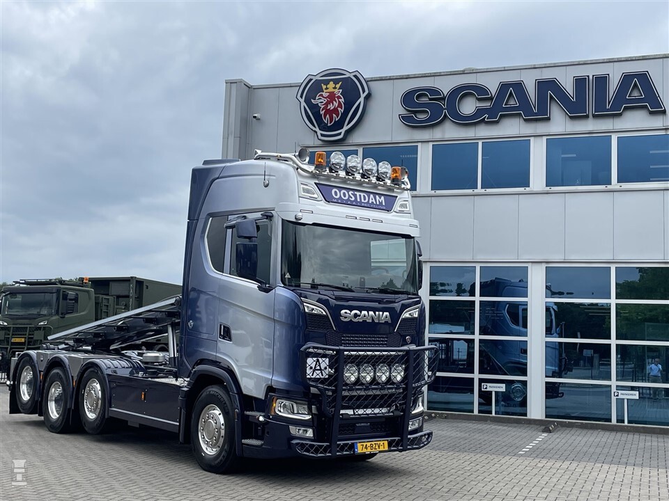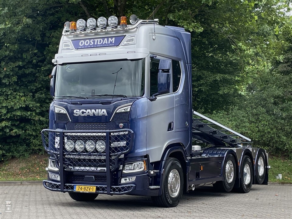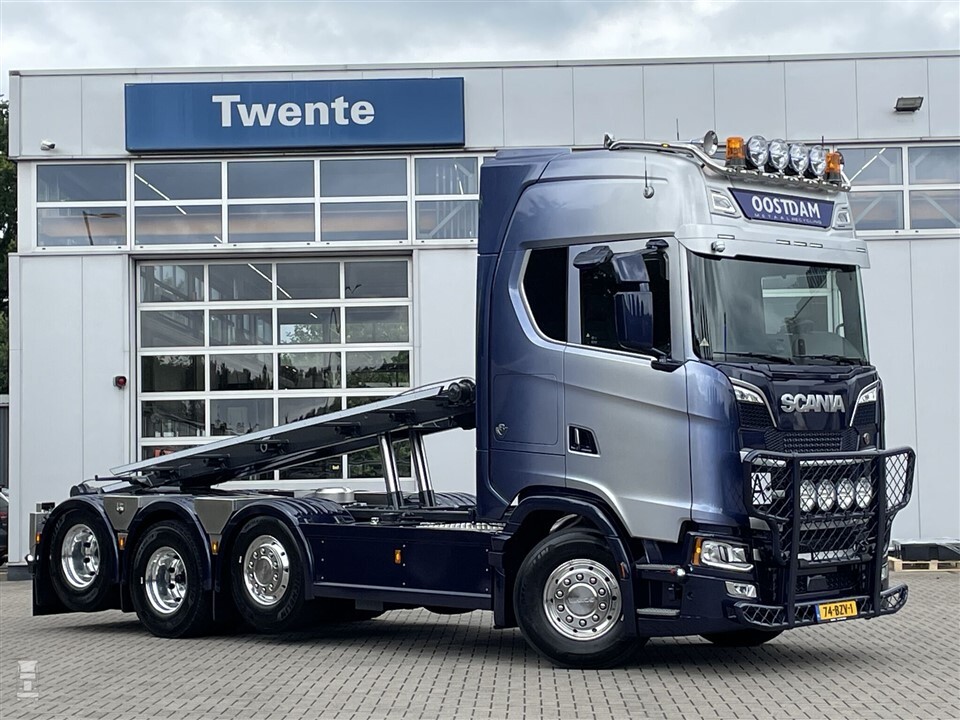 Bij Scania Twente vinkte Oostdam ook heel wat opties aan. De Scania S770 B8x2*4NA 20 Highline, zoals hij officieel heet, is voorzien van een 10-tons vooras en het complete King of the Road pakket. Het stoelen zijn uitgevoerd in leer. Uiteraard ontbreken ook standkachel en -airco niet. De opbouw met kabelsysteem werd verzorgd door Lako Wegtransportmiddelen BV.