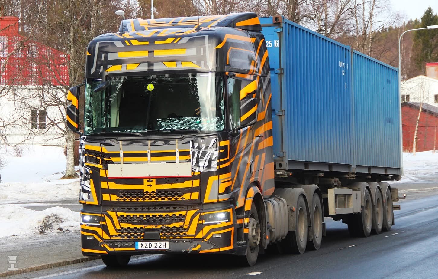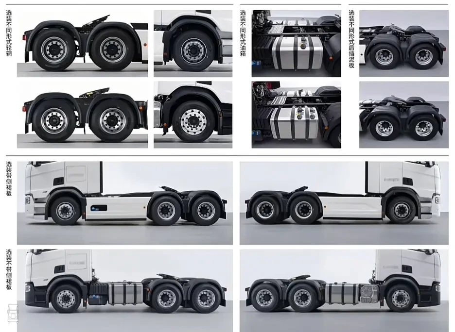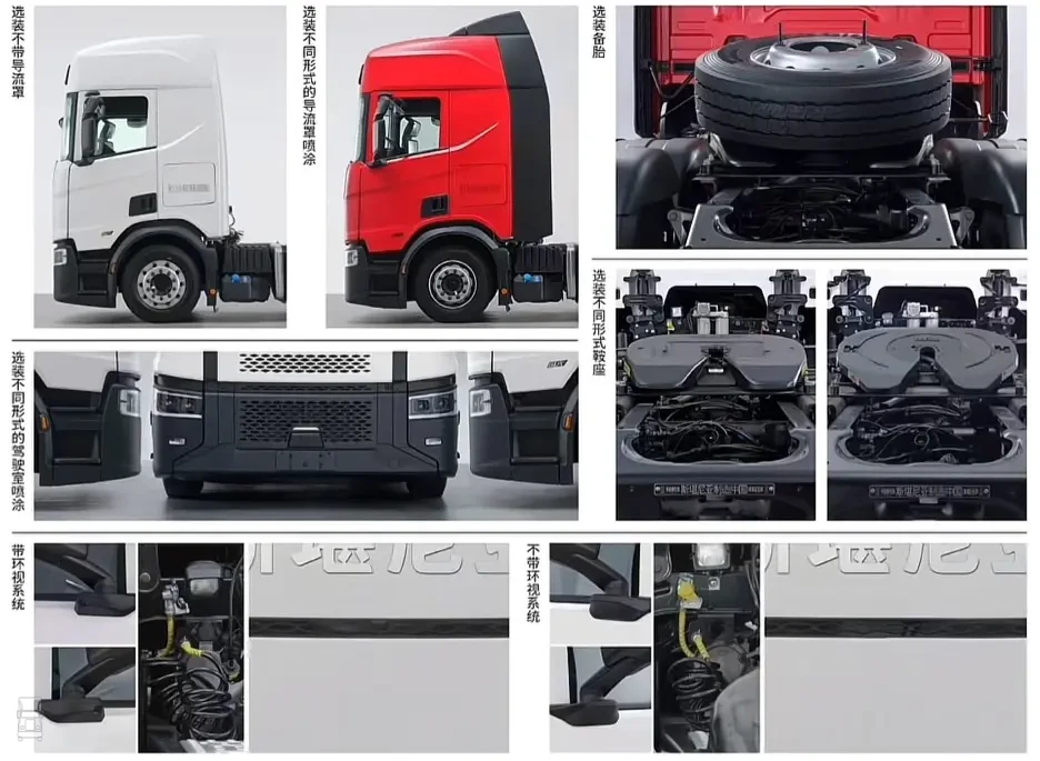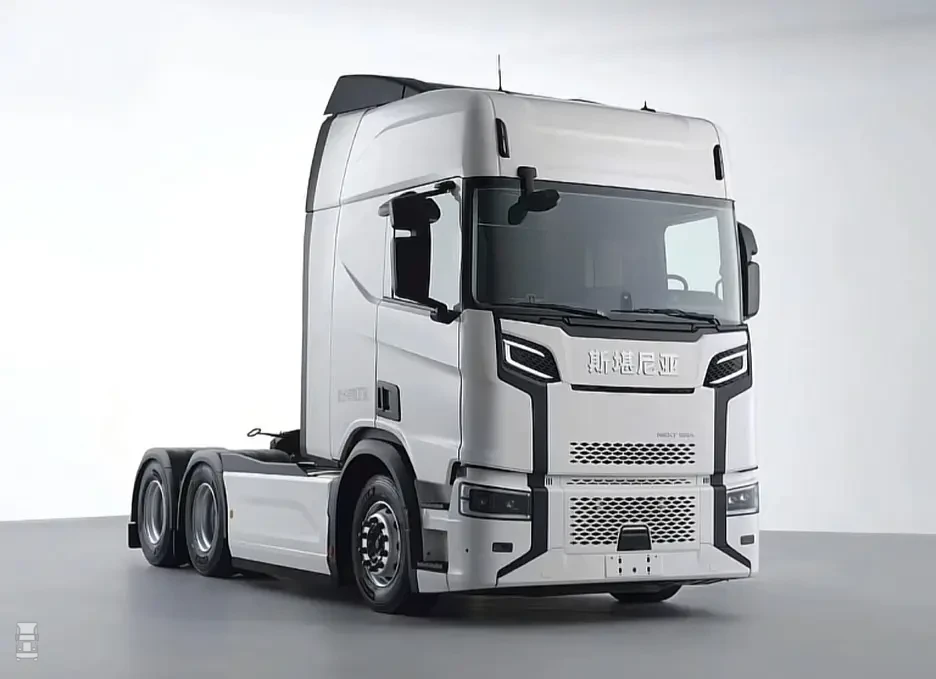 De foto's zie je hierbij en daarbij valt op dat het front volledig anders is. Bij de Scania 'Next Era' zoals hij genoemd wordt zijn de horizontale strepen in de grille die het merk al voert sinds de Scania 110 en 140 modellen verdwenen. In plaats daarvan is er een glad front met een kleinere grille en verticale lijnen. Opvallend is ook dat de merknaam in verchroomde, Chinese tekens op het front staat. Verder zijn de toplichten op de cabine ook verticaal geplaatst.