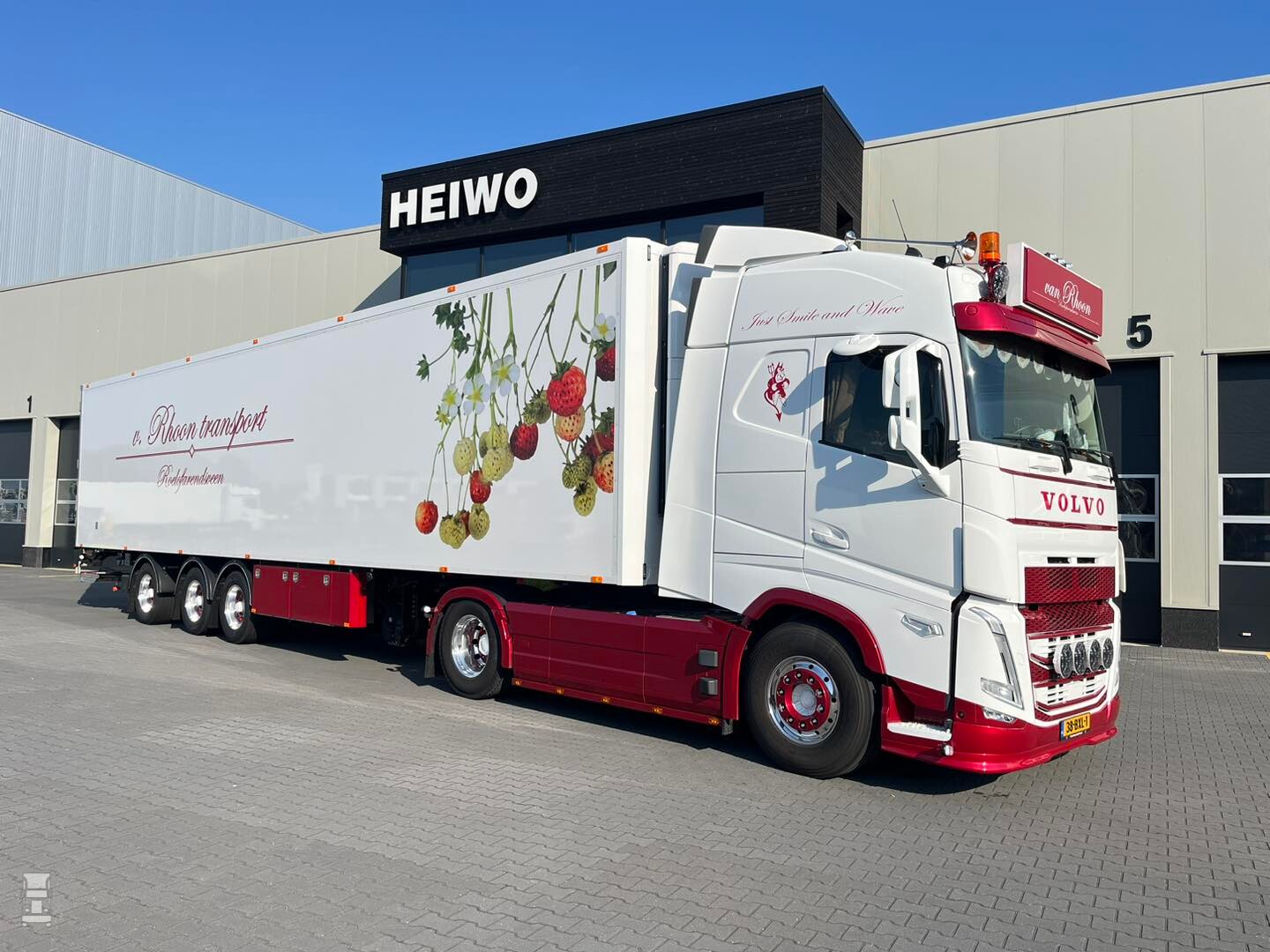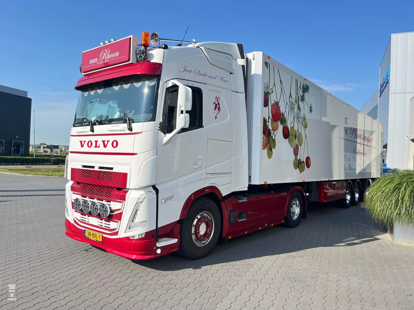 De 500 pk Volvo FH trekker is voorzien van de nodige opties, zoals een onderspoiler, windkapjes op de hoeken en lichtlatten onder de zijskirts. Verder siert een fraaie lichtbak de truck. Met glanzende Alcoa's onder de in fris wit met rood gespoten combinatie ziet het er uit om door een ringetje te halen. Meer over de trailer lees je hier!