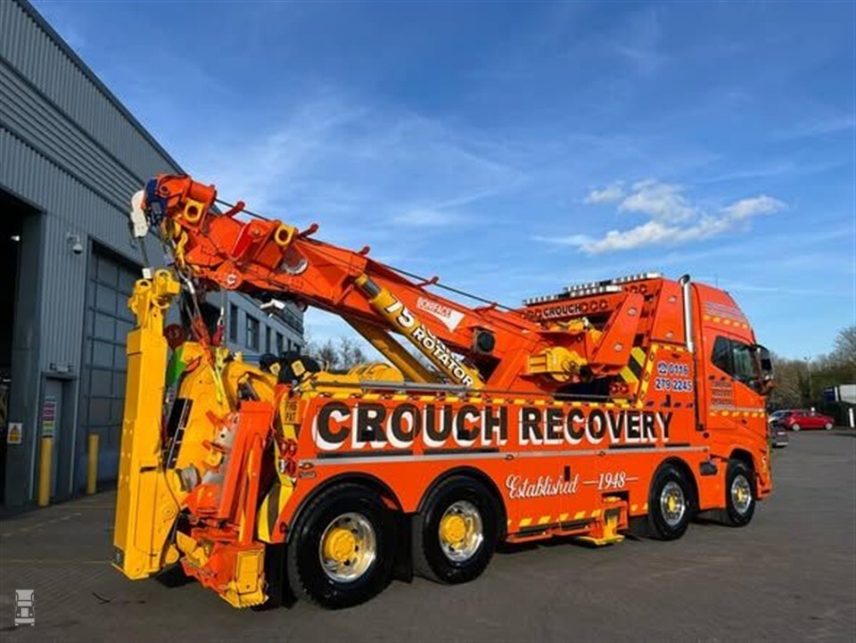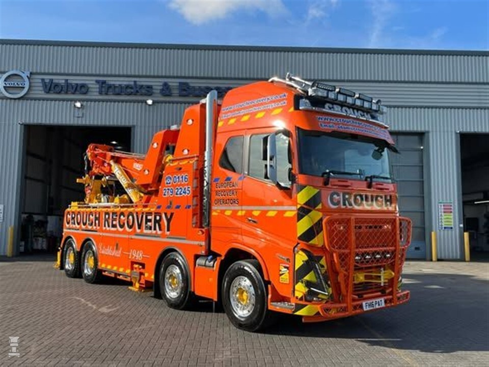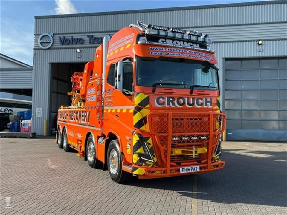 De nieuwe Volvo van het bedrijf zou niet misstaan op de beeldbuis. Met zijn enorme bullbar en glimmende staande uitlaten achter de cabine maakt deze berger direct indruk. Aan extra verlichting is ook geen gebrek. De feloranje lak maakt de Volvo alleen maar stoerder. Crouch Recovery koos wel voor de FH16, maar niet voor de meest krachtige motor. Met 750 pk aan boord hoeft de chauffeur echter niet te wanhopen. De opbouw van de bergingswagen is verzorgd door Boniface Engineering.