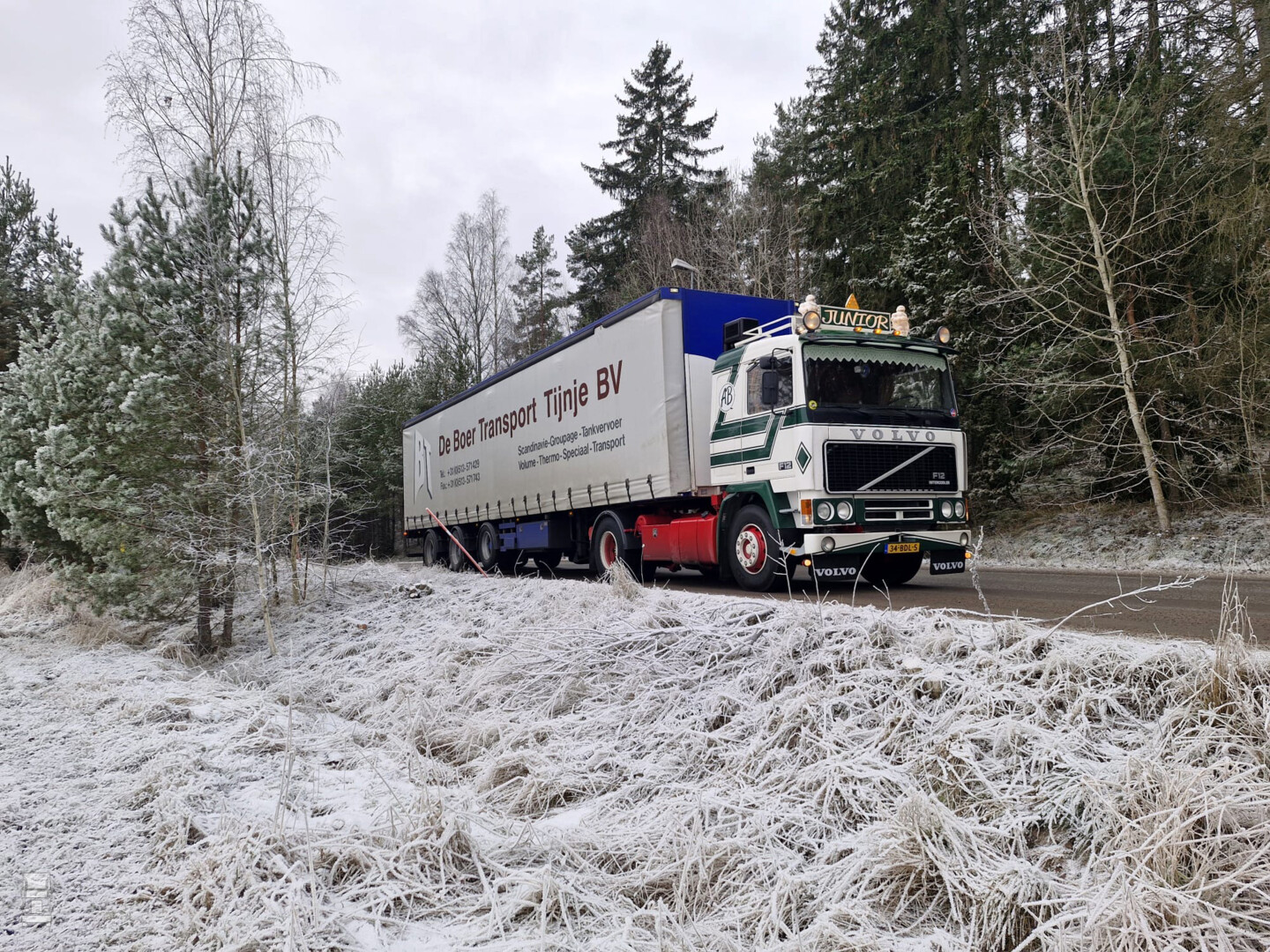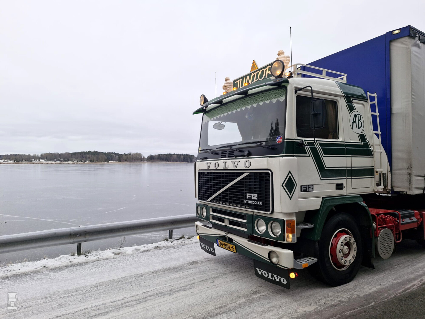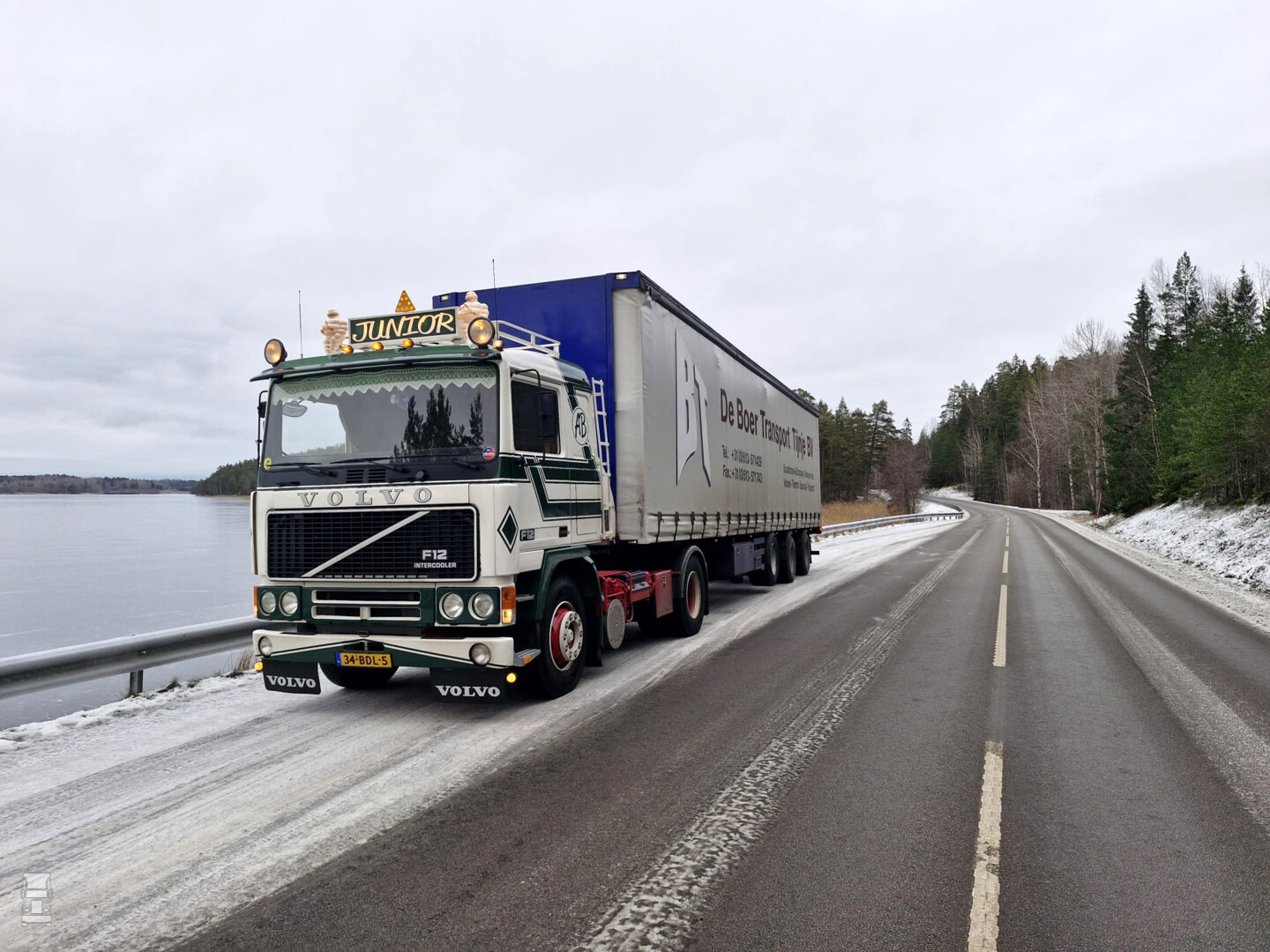 Voor ritjes binnen Nederland pakt Allard af en toe graag af en toe de F12. Gewoon omdat het nog steeds een prima truck is en omdat rust roest. Eerder dit jaar maakte hij ook al een rit naar Zweden met de truck, maar dit is de laatste keer dat de auto met lading de grens over mag. In Zweden trekt de trekker veel bekijks. Overigens is de rit naar de regio Stockholm wel een koude ervaring. De standkachel werkt namelijk niet. (tekst loopt door onder de foto's)