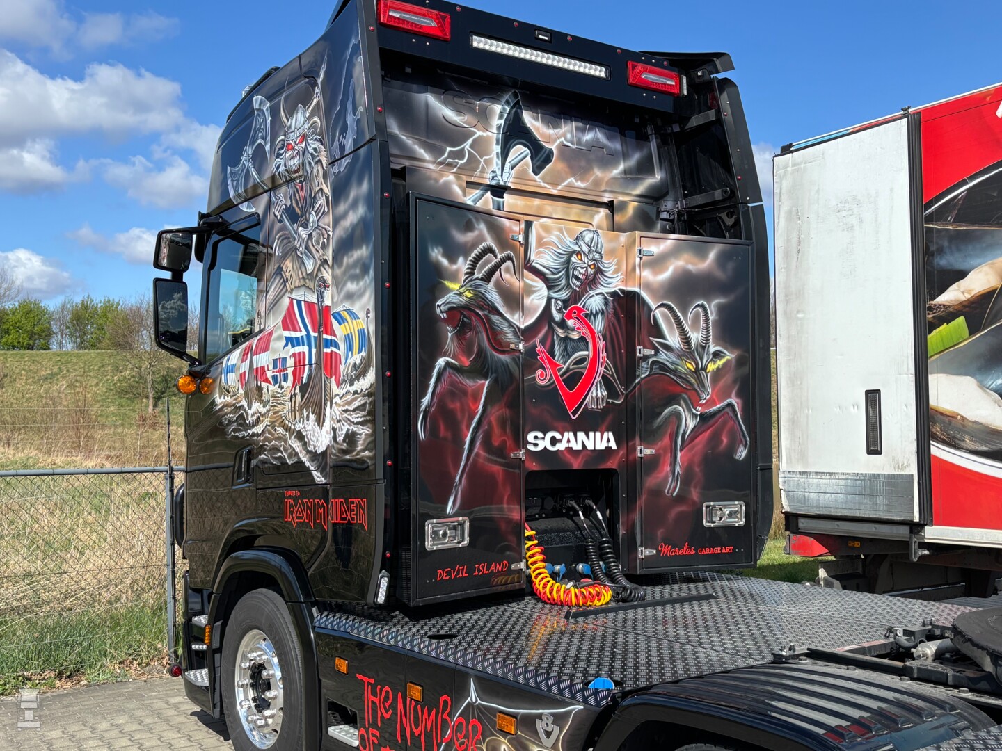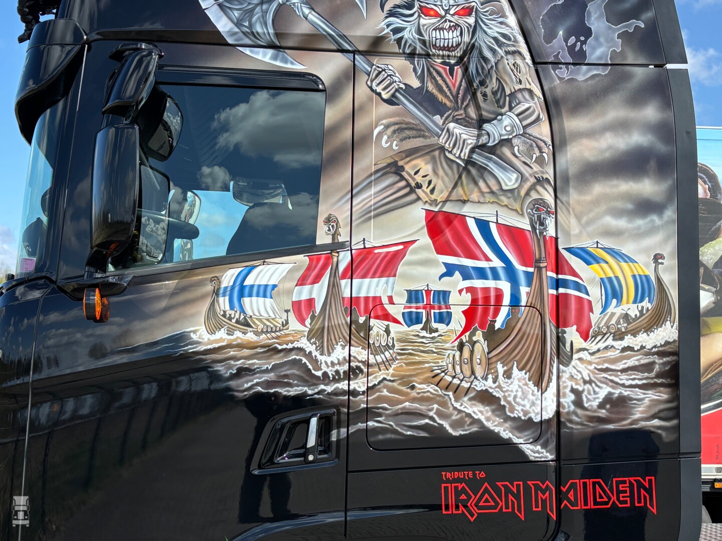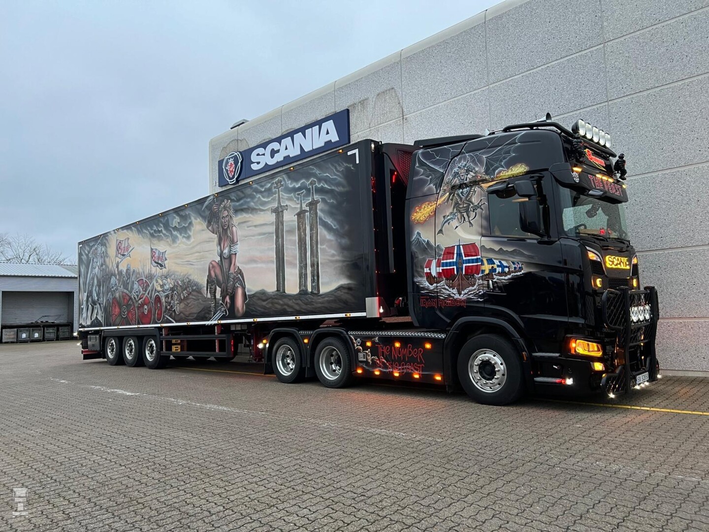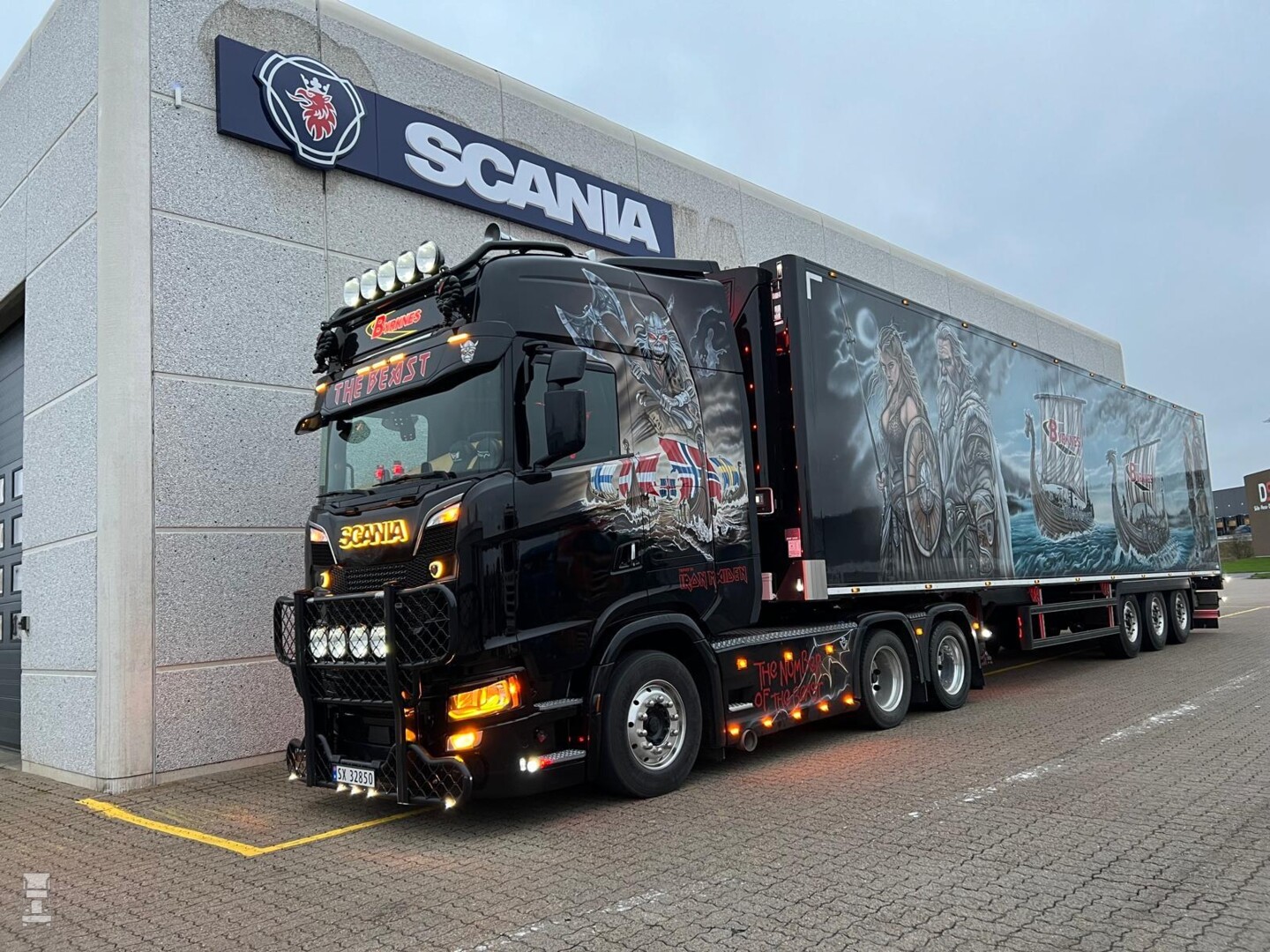 De zwarte combinatie is volledig in special paint gehuld en bijzonder is dat de trailer niet beplakt, maar ook gespoten is. De indrukwekkende combinatie was in Nederland met lading vanuit Noorwegen en pikte bij Hartman Expeditie in Nieuw Amsterdam een lading op voor Denemarken. Daar is hij als het goed is nu aangekomen, waarna hij op de show Transport 2025 te zien is. BIGtruck is ook aanwezig op die show, op jacht naar transportnieuws uit Scandinavië. Stay tuned dus!