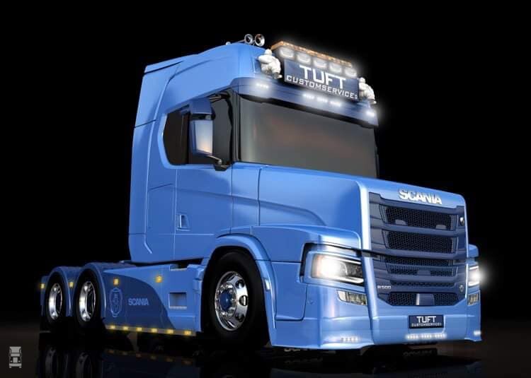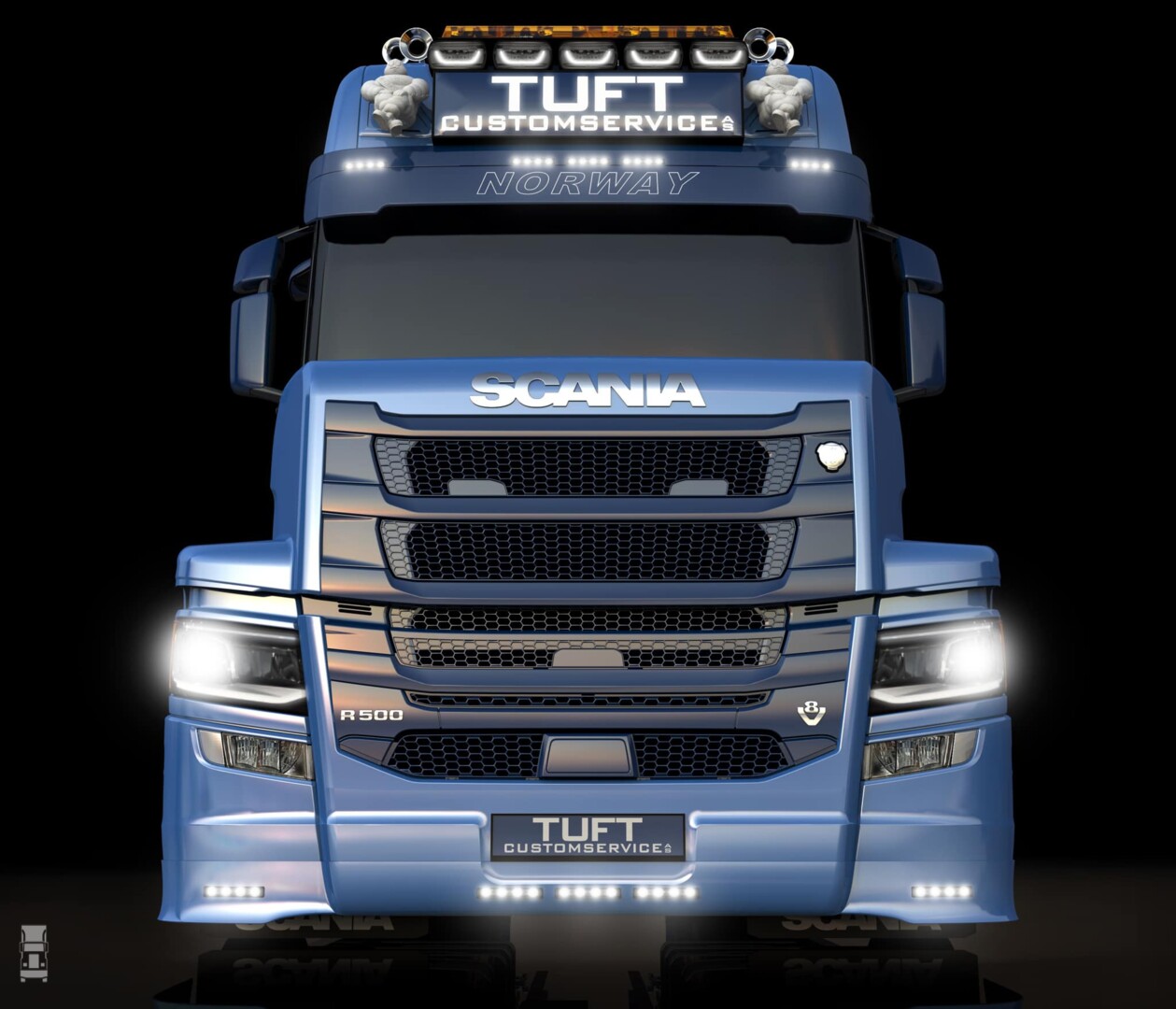 De bekende Vlastuin Scania Torpedo is gebaseerd op de hoge Scania S- cabine met zijn vlakke vloer. Vlastuin is succesvol met deze conversie. Het bedrijf uit Renswoude bouwde inmiddels een kleine 50 van deze trucks. Het gevolg van de hoge S- cabine is dat de door Vlastuin ontworpen neus erg hoog en groot is. Bij Tuft CustomService gingen ze uit van de lager geplaatste R- cabine, waardoor het geheel er wat subtieler uit ziet. Wij zijn benieuwd hoe deze neus er uit ziet voor een Scania R- met Standaard of laag dak!