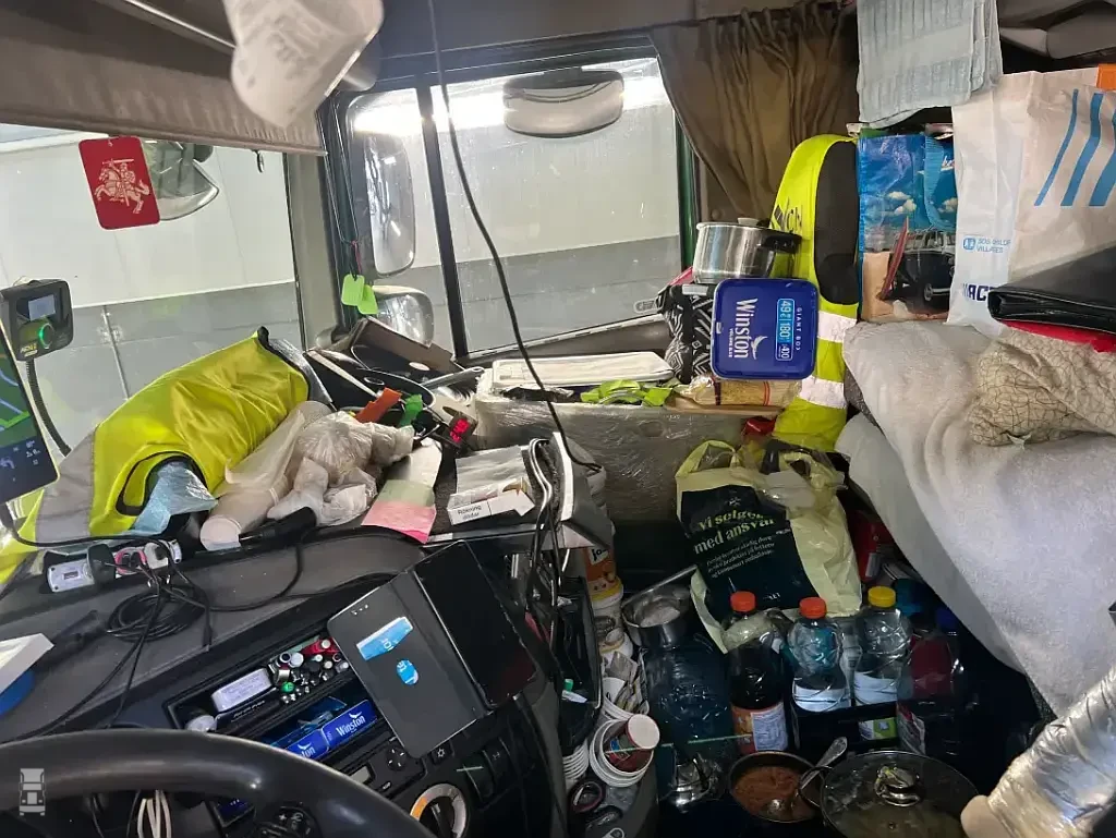 Opvallend is dat er ook gelet wordt op losse spullen in de cabine die een eigen leven kunnen gaan leiden bij een aanrijding. De afgelopen maanden fotografeerde de dienst verschillende voorbeelden van extreem rommelige cabine interieurs. Vooral de foto van de DAF cabine van een Litouwse chauffeur spreekt boekdelen. Hoe is het mogelijk dat iemand zo rond rijdt! De chauffeurs van de gefotografeerde trucks moesten eerst de cabine opruimen en het stuurwiel vervangen door een origineel exemplaar. Los van de boete gold er een rijverbod zolang de interieurs niet aangepast waren. Het is maar dat je het weet.