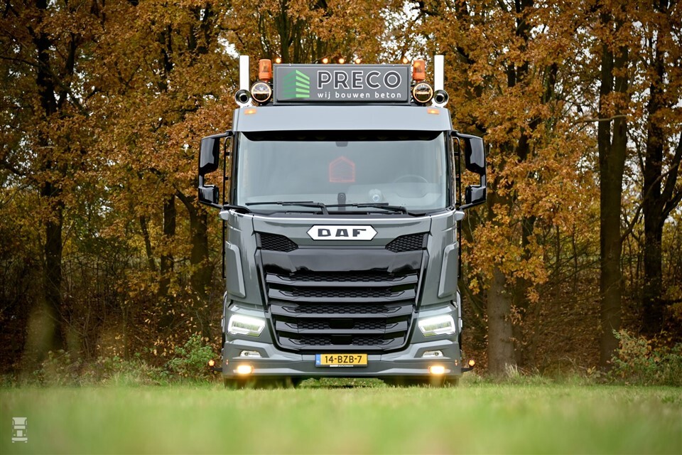 Preco specialiseert in prefab betonelementen. Naast de productie verzorgt het bedrijf ook het transport. Hiervoor kan Preco nu een fraai oldskool DAF trekker inzetten. Chauffeur Mees van Deelen was onder de indruk van de DAF demo die Bakker Bedrijfswagens op de weg had gezet. Zo eentje wilde hij zelf wel! En zo geschiedde: Mees kan nu op pad met zijn eigen oldskool DAF.