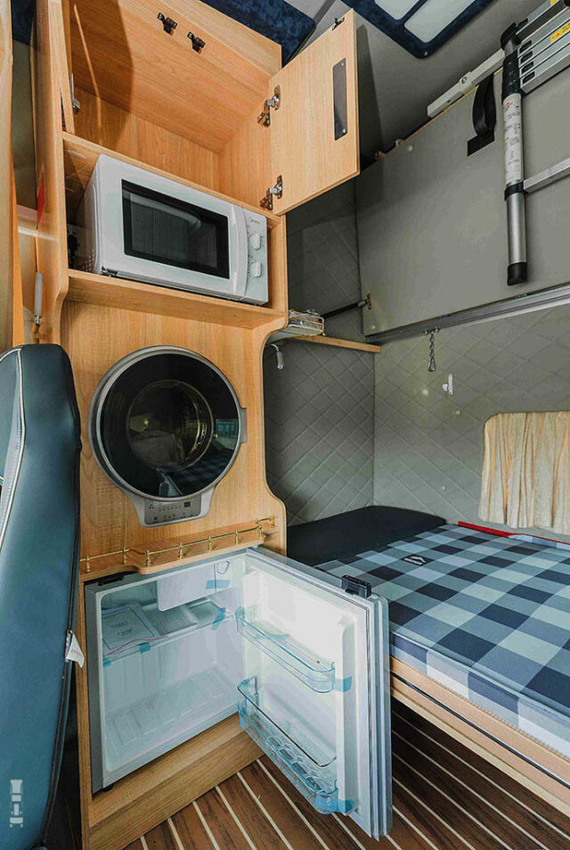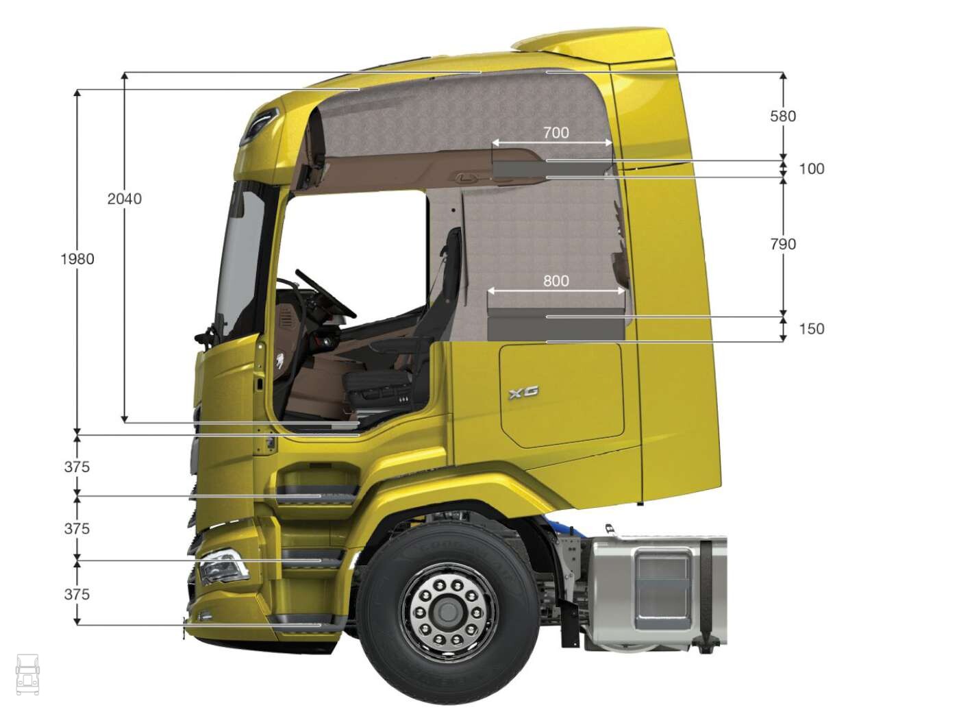 De DAF XG+ heeft op dit moment de grootste cabine die je af- fabriek kunt kopen in Europa en dat biedt ruimte voor zaken die vroeger gewoon niet pasten. Denk daarbij aan een wasbakje, een douche, een toilet of een wasmachine. Wat jij wilt! Ook een keukenblokje zou bijvoorbeeld kunnen, of een zithoek met een lounchebank? Je zegt het maar.