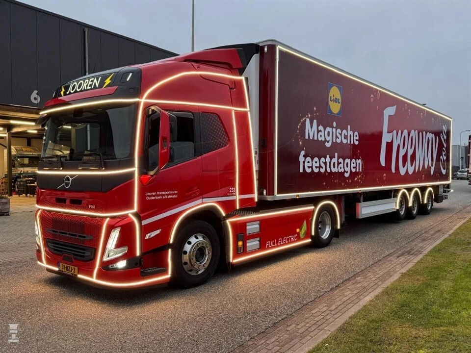 Lidl wil in 2030 alle logistiek in ons land volledig elektrisch uitvoeren, dus dan is de inzet van een dikke Kenworth zoals in Groot-Brittannië wat problematisch. Daarom is de Nederlandse Kersttruck van Lidl volledig elektrisch, in de vorm van een Volvo FM Electric van Jooren Transport uit Ouderkerk a/d Amstel. Ook de oplegger is volledig elektrisch.