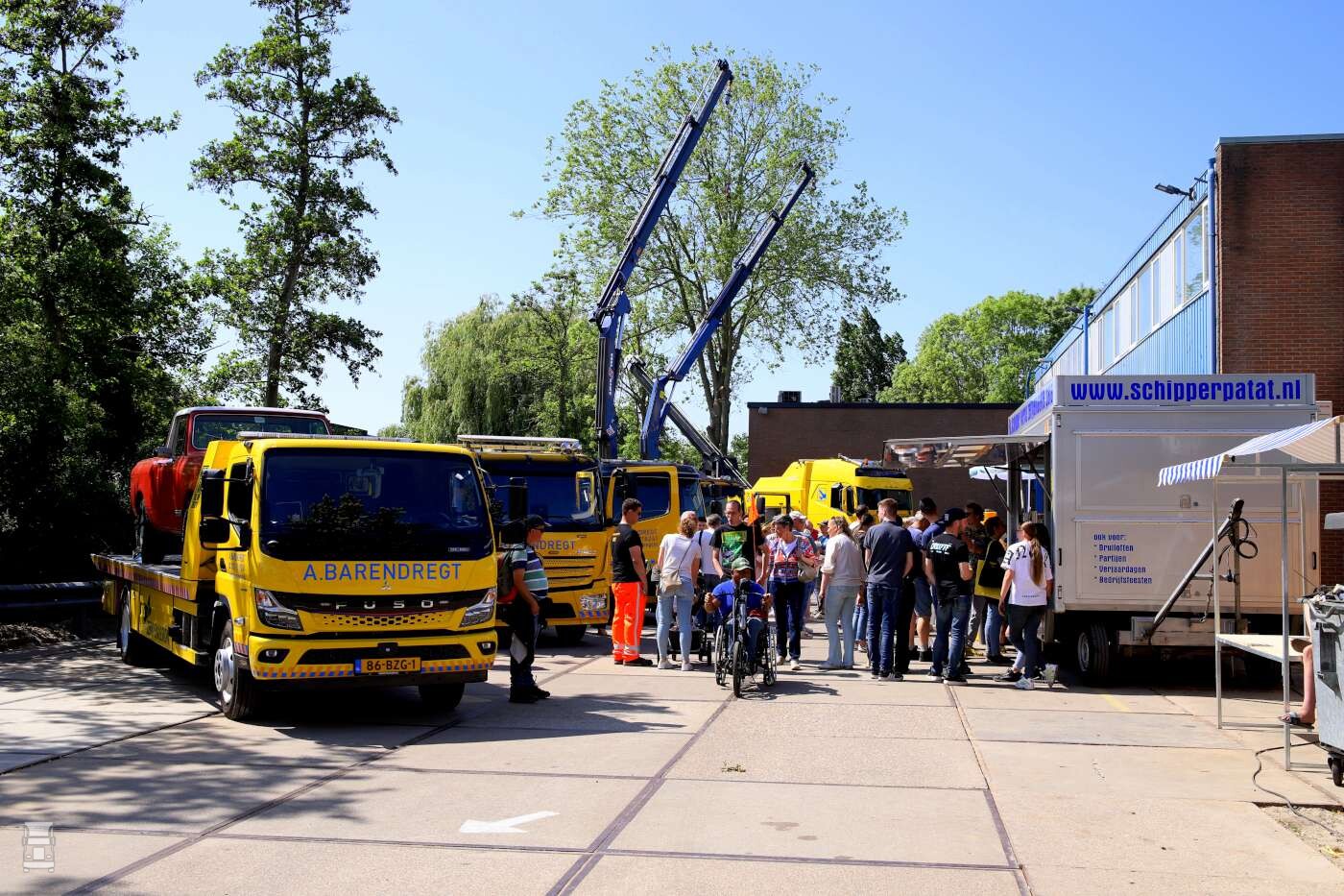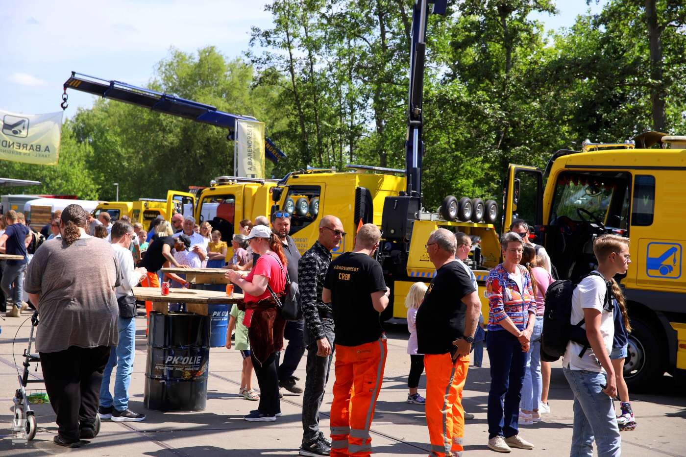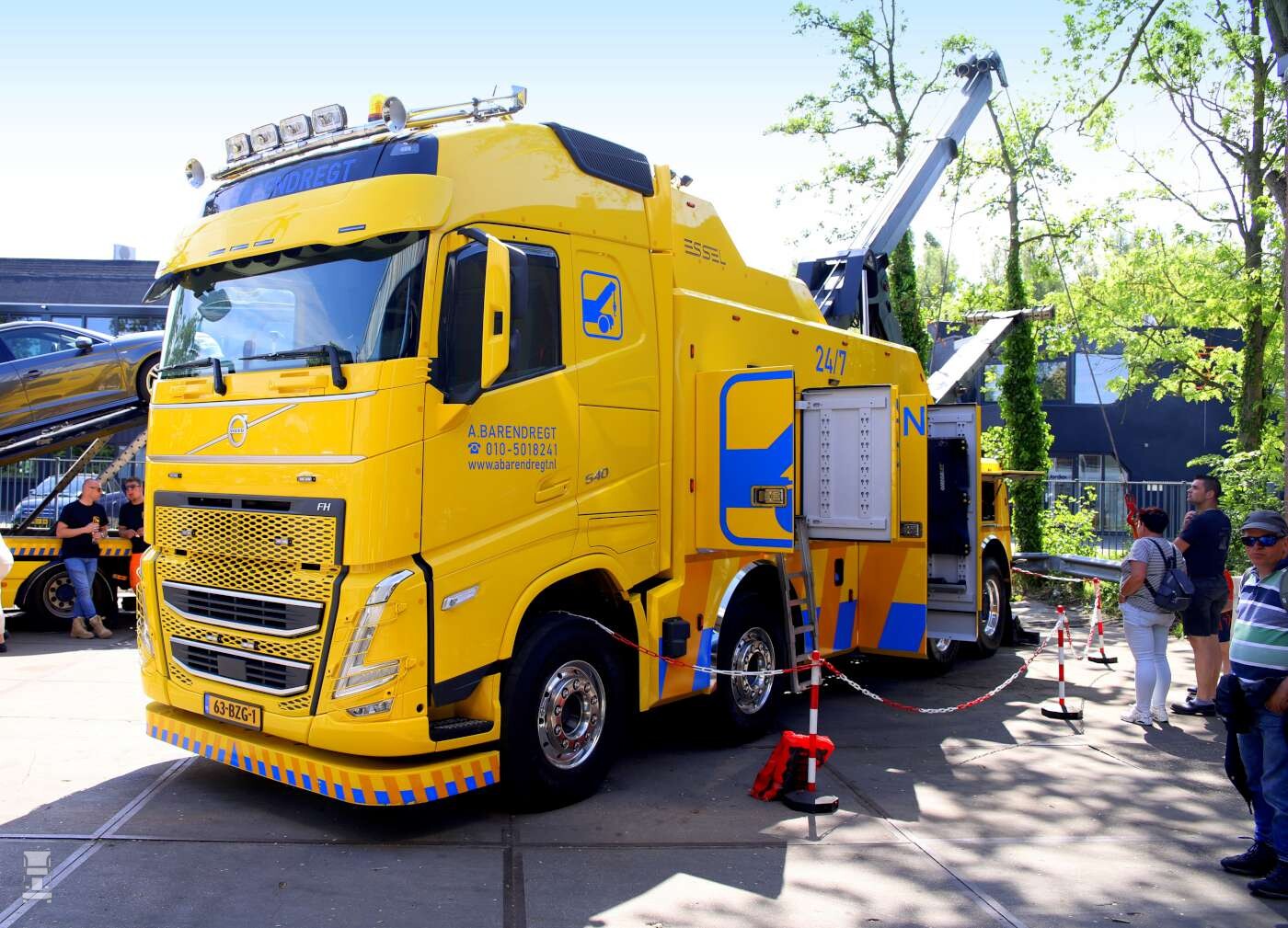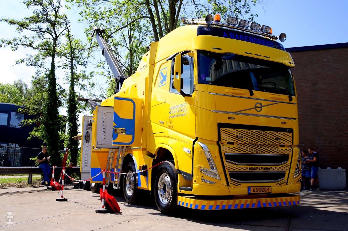 Buiten op het terrein stonden de bergingsauto's opgesteld waaronder de MAN TGS 41.480 en de nieuwe Volvo FH 540 8x4 zware bergingsauto. Daarnaast stond er ook nog meer nieuws; een elektrische Mitsubishi Fuso Canter oprijwagen en een Mercedes-Benz Atego 1224 oprijwagen. En dat moois kon je bewonderen met wat lekkers in je hand zoals een ijsje of een lekker patatje!
