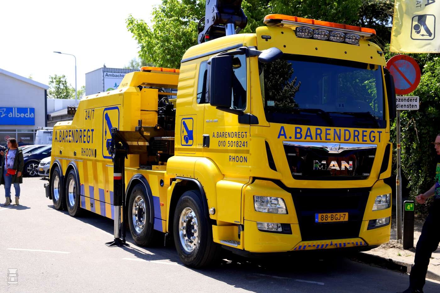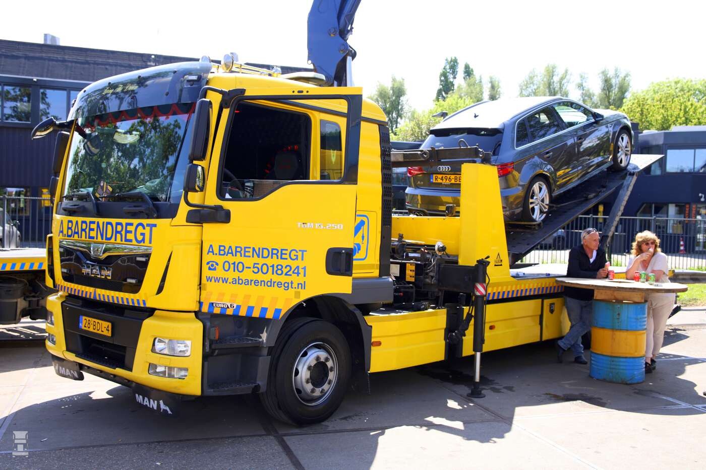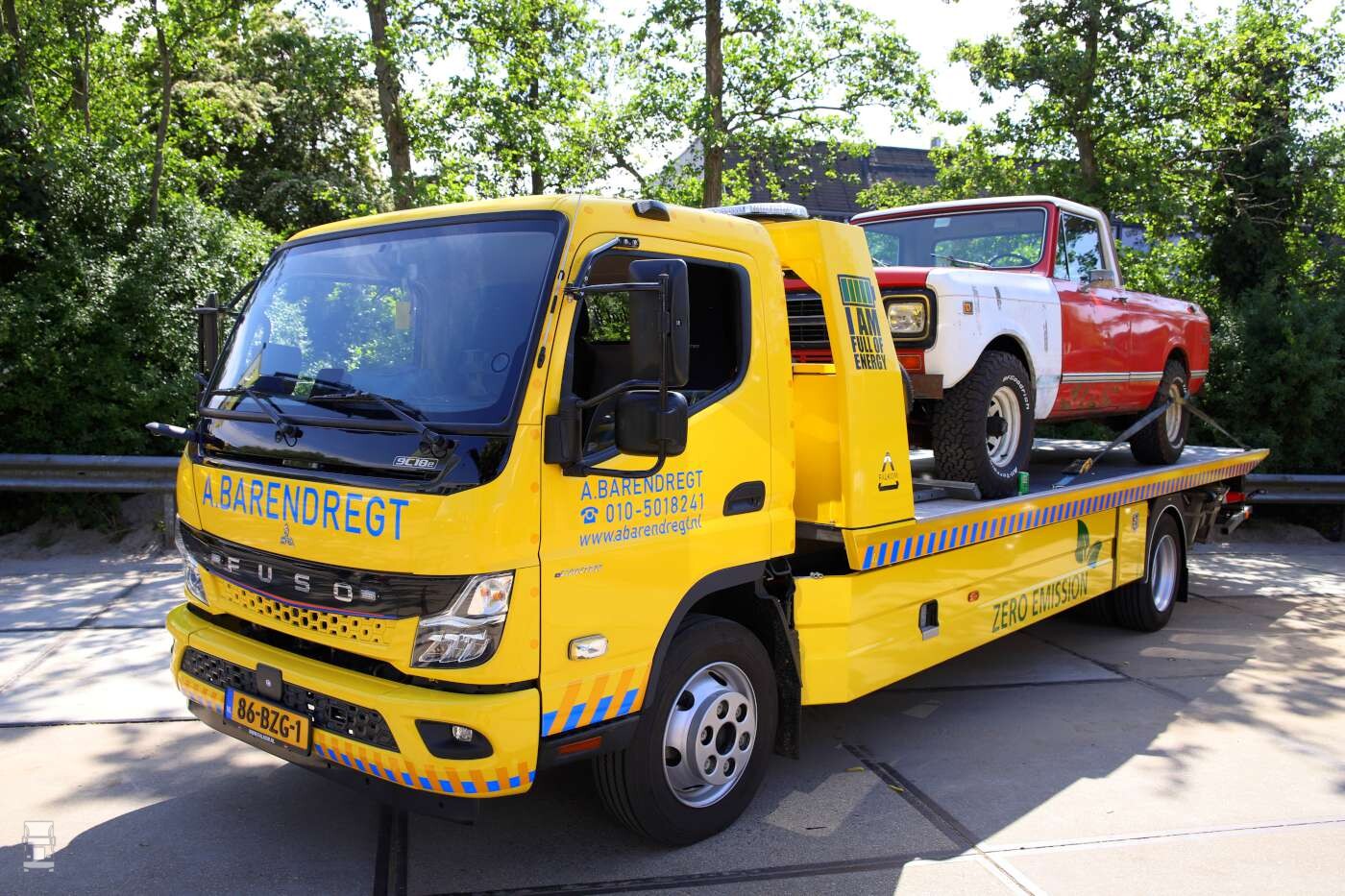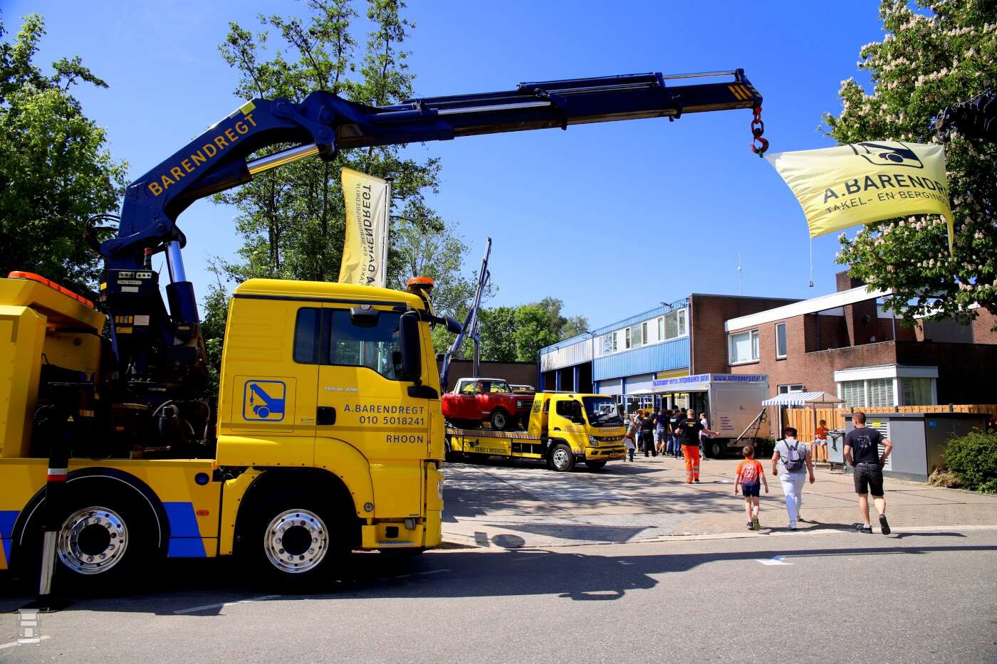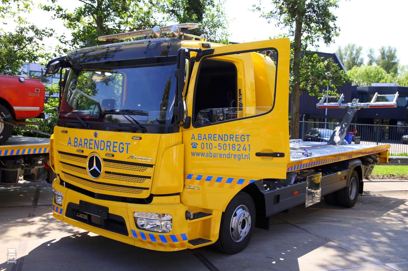 Buiten op het terrein stonden de bergingsauto's opgesteld waaronder de MAN TGS 41.480 en de nieuwe Volvo FH 540 8x4 zware bergingsauto. Daarnaast stond er ook nog meer nieuws; een elektrische Mitsubishi Fuso Canter oprijwagen en een Mercedes-Benz Atego 1224 oprijwagen. En dat moois kon je bewonderen met wat lekkers in je hand zoals een ijsje of een lekker patatje!