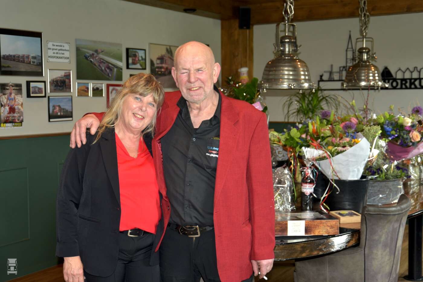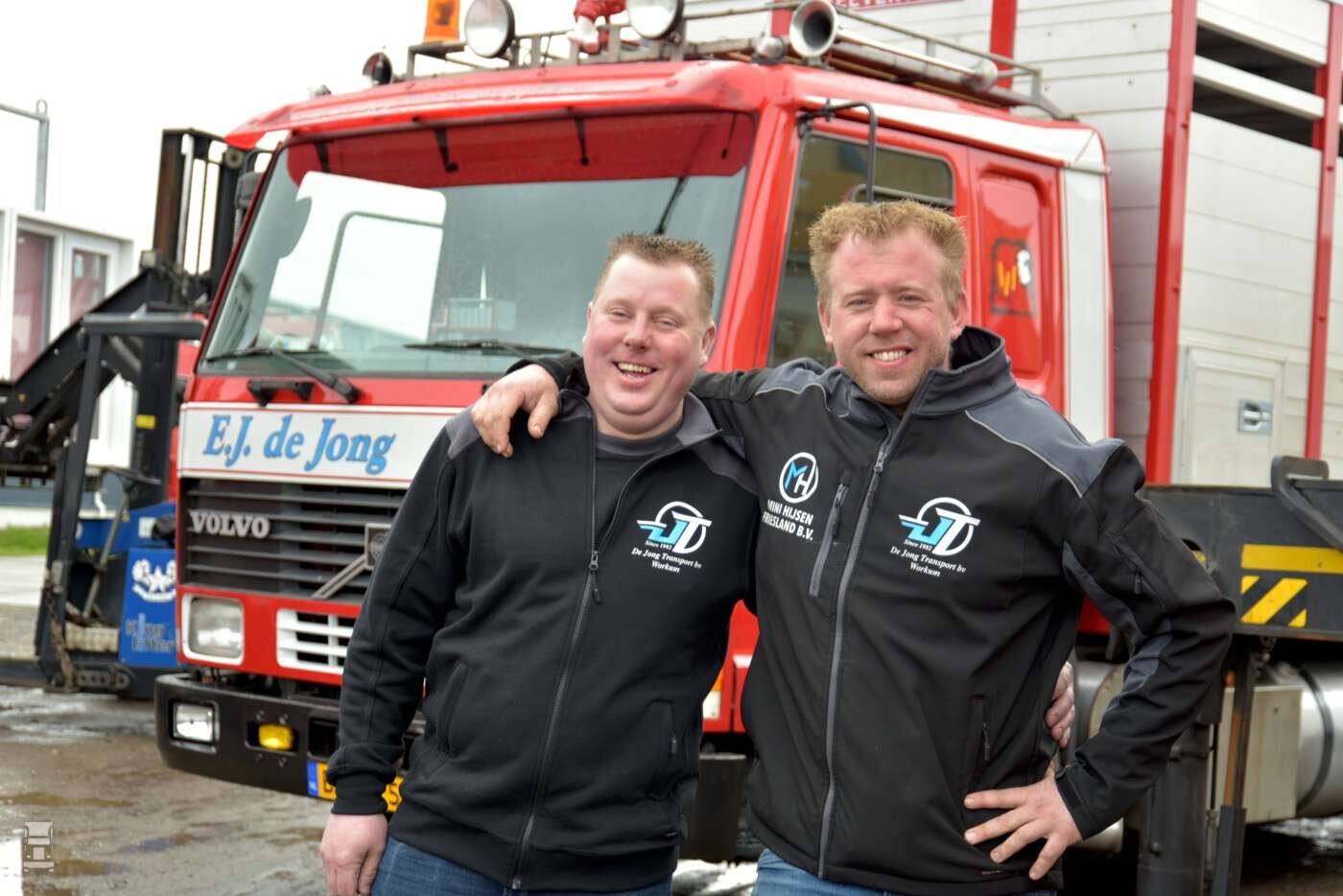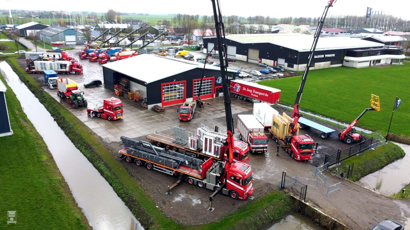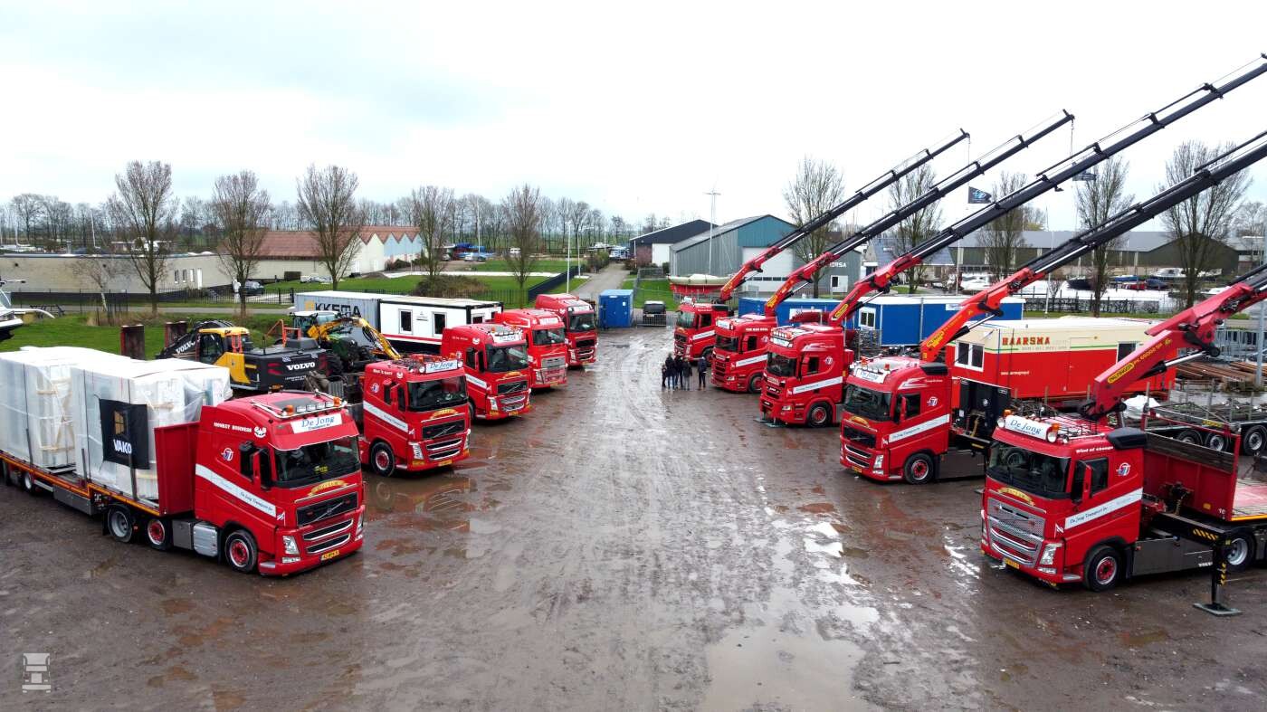 Het transportbedrijf werd opgericht in 1982 door Eelco De Jong. We spreken Eelco tijdens de feestelijkheden in de fraaie kantine van het nieuwe pand. ,,Toen ik begon in 1982 kon ik een F88 veewagen en een kleine Iveco overnemen van A. Wiersma in Parrega. Ik zag dat helemaal zitten maar ik kon dat niet alleen. Ik had verkering met Marjan, en ik ben eerst naar haar toe gereden om te vragen of zij het zag zitten, en dat deed ze. We zijn toen samen het avontuur aangegaan, en dat groeide in 41 jaar tot uit tot waar we nu zijn’’. Het transportbedrijf groeide gestaag met meerdere overnames van veerijders in de omgeving. Zo werd van de firma Amsterdam uit Hindeloopen ook de afdeling veevervoer overgenomen, inclusief een Volvo FL6 en een F7.