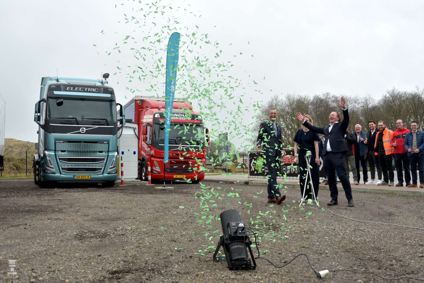 Dat is belangrijk, want meestal wordt er met vrachtwagens geen rekening gehouden. In Pesse is dat wel het geval. Elektrische personenauto's hebben hun eigen plek, elders op het terrein waardoor ze de chauffeurs niet in de weg staan. De snelladers zijn goed voor 350 kW waardoor je lekker vlot kunt laden.