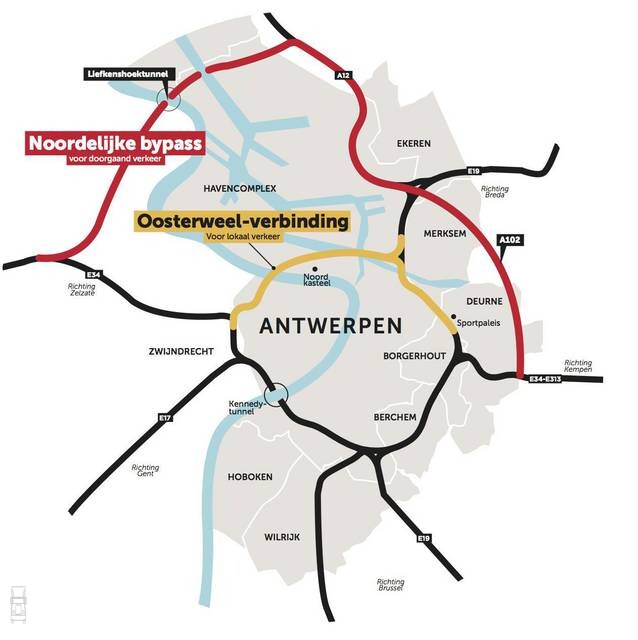 Antwerpen krijgt een extra rondweg aan de oostkant, de Oosterweel, die is bedoeld voor lokaal verkeer. Het meeste doorgaande verkeer wordt via de Liefkenshoektunnel geleid. Daar zullen de files wel heen verplaatst worden, omdat velen voor de tunnel een tolkaartje moeten kopen.
