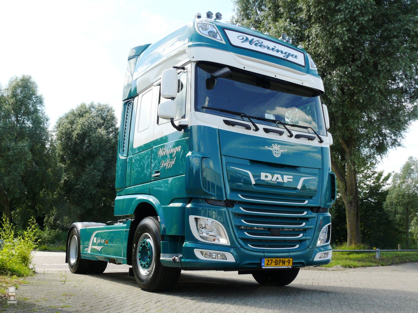 Transportbedrijf Wieringa V.O.F. uit Delfzijl heeft deze opvallende nieuwe DAF in gebruik genomen. De DAF XF 480 FT met Super Space Cab is zeer compleet uitgevoerd en o.a. voorzien van 9-tons vooras, automatische klimaatregeling, dubbele set luchthoorns, skylights, Luxury Air chauffeursstoel en MX Engine Brake.