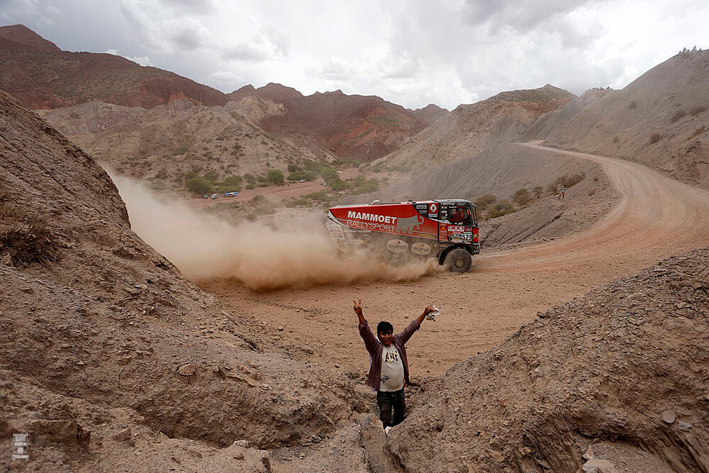 Mammoet-coureur Pascal de Baar heeft vandaag vriend en vijand verbaasd door de etappe te winnen met zijn door MKR geprepareerde Renault. In waarschijnlijk de zwaarste Dakar-etappe van dit jaar was hij met een tijd van 4 uren, 51 minuten en 41 seconden ruim twee en een halve minuut sneller dan de nummer twee, Gerard de Rooy. Dat deze twee mannen samen van een ongekende klasse waren vandaag bewijst de rest van de uitslag wel, de nummer 3 komt nog eens een half uur later en vanaf de tiende plek hebben de teams zelfs meer dan een uur achterstand.