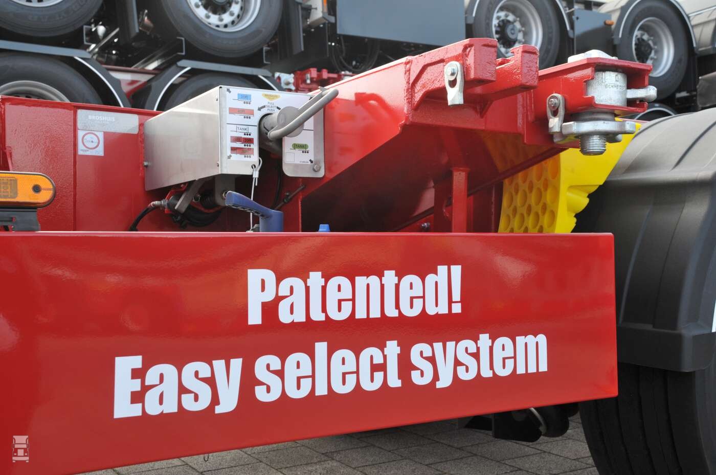 Met twee selectiehandels aan de zijkant kiest de chauffeur de gewenste stand van het chassis, bijvoorbeeld 20ft. Vervolgens kan de chauffeur instappen en hoeft hij alleen nog maar een keer achteruit, een keer vooruit en nog een keer achteruit te rijden. De remmen van de oplegger worden hierbij automatisch geactiveerd. Uiteraard moet je de juiste plaatsing van de twistlocks of voor de extra ondersteuningsbalken wel zelf in actie komen, maar dat kan dus in één handeling.