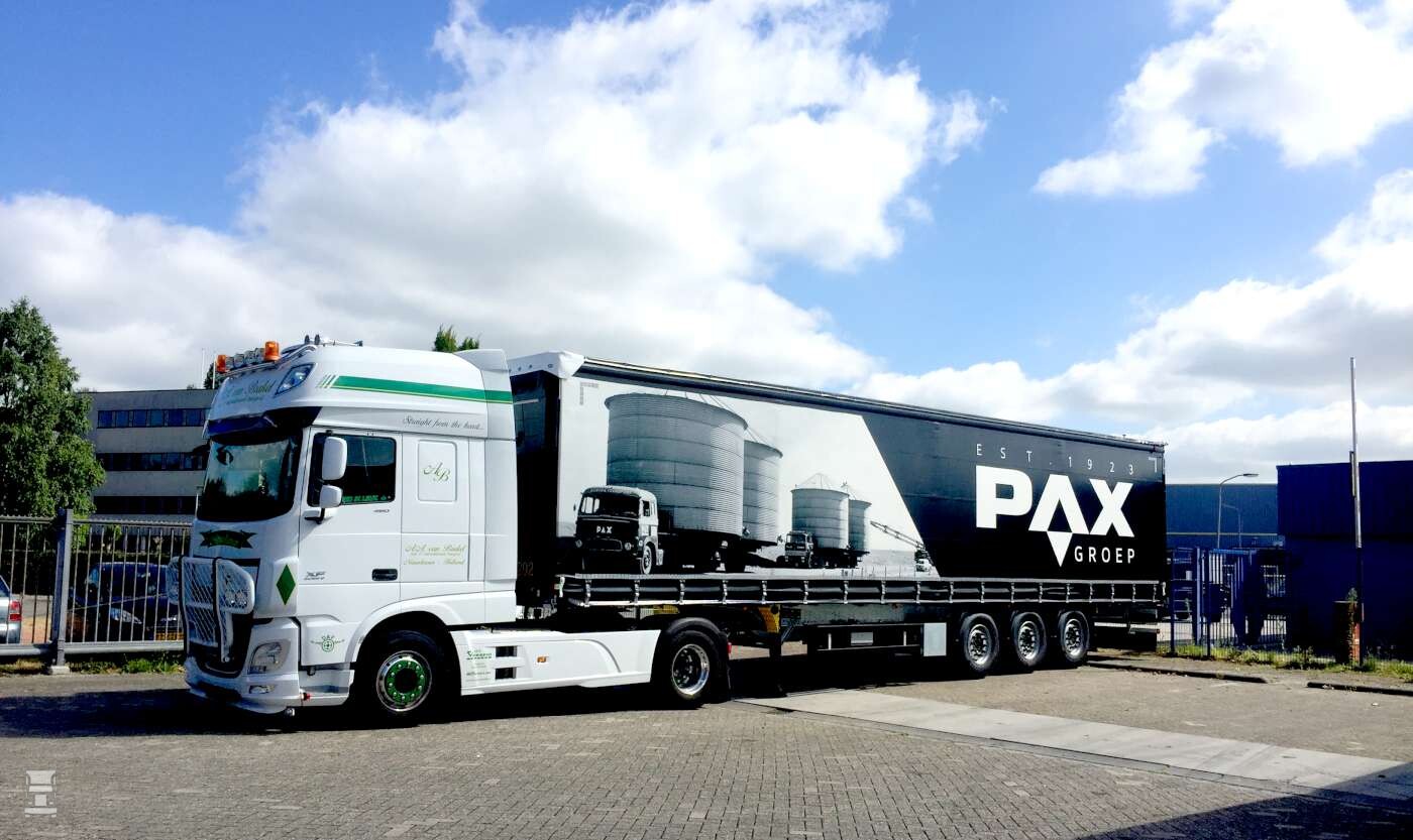 PAX Groep is een brede organisatie waar onder meer Nabek Wegtransporten deel van uitmaakt. Bij dat bedrijf in Hoogezand zet PAX sinds vandaag twee nieuwe opleggers in met prints die herinneren aan de prachtige historie van het bedrijf. A.A. van Brakel uit Nieuwleusen rijdt als vaste charter met één van die fraaie nieuwe opleggers.