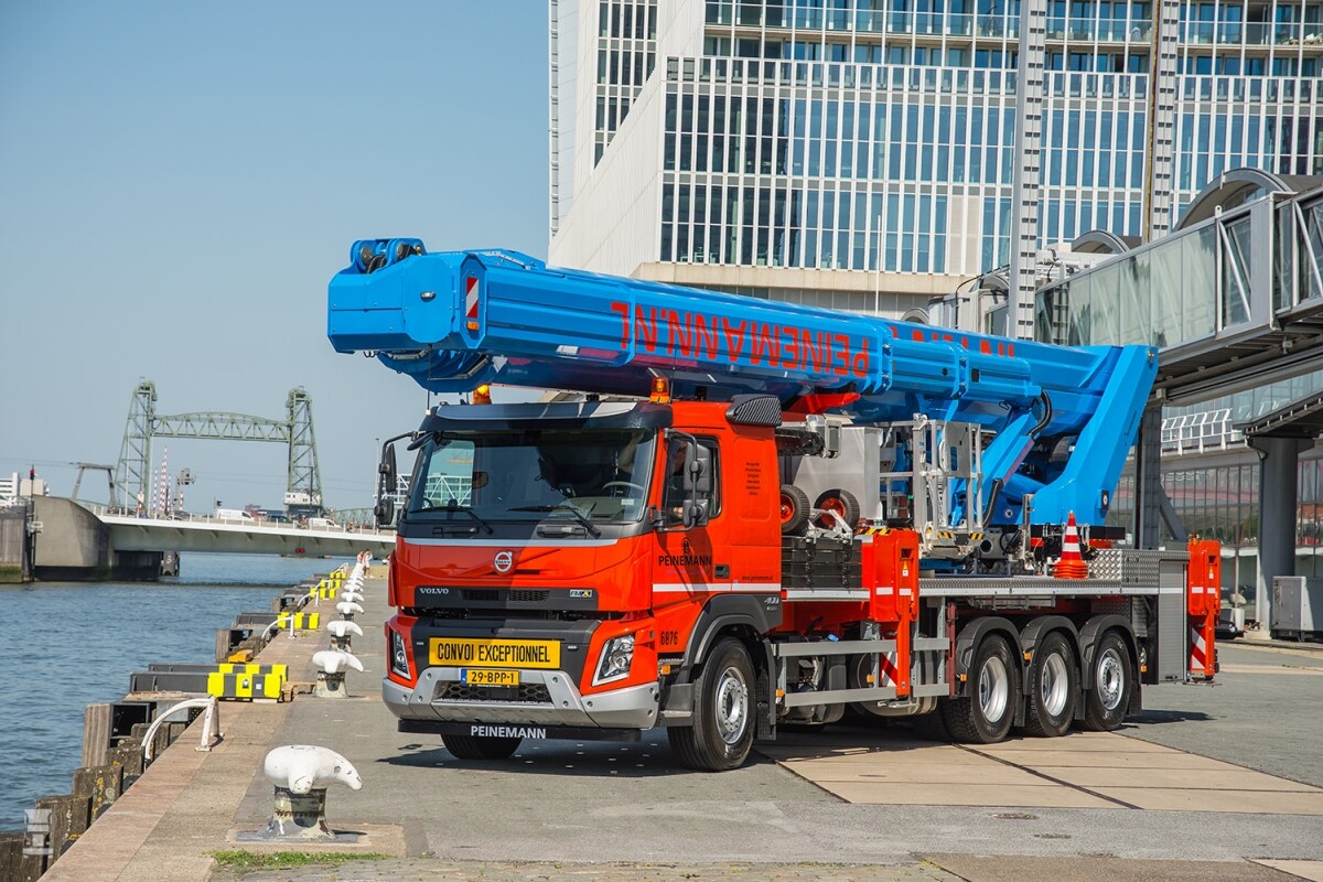 Peinemann Hoogwerksystemen uit Hoogvliet heeft onlangs een Volvo FMX 8x4 in gebruik genomen. Het voertuig is opgebouwd met een Ruthmann hoogwerker waarvan de werkhoogte 75 meter is en het maximale zijdelings werkbereik 41 meter. Vooral het manoeuvreervermogen, de wendbaarheid en flexibiliteit van truck en opbouw waren voor Peinemann redenen om hiervoor te kiezen. De truck wordt ingezet in de verhuurvloot van Peinemann en werd geleverd door Volvo Rotterdam.
