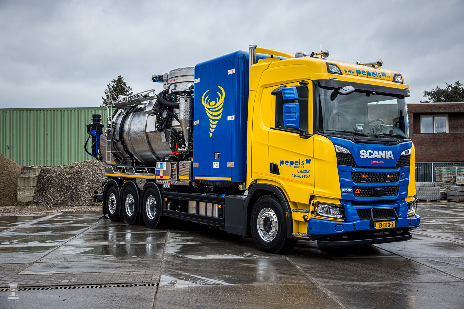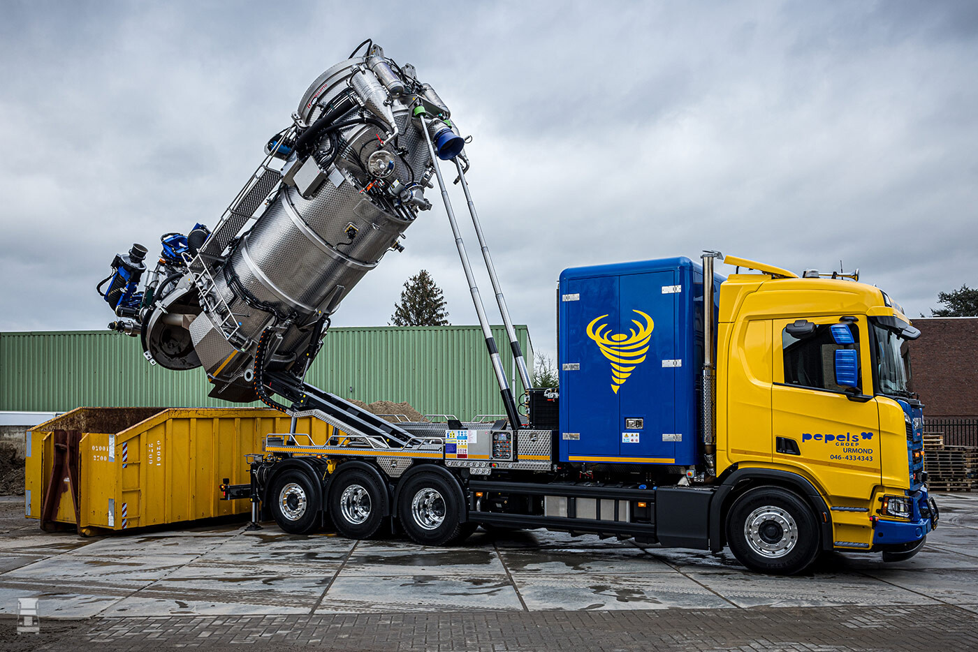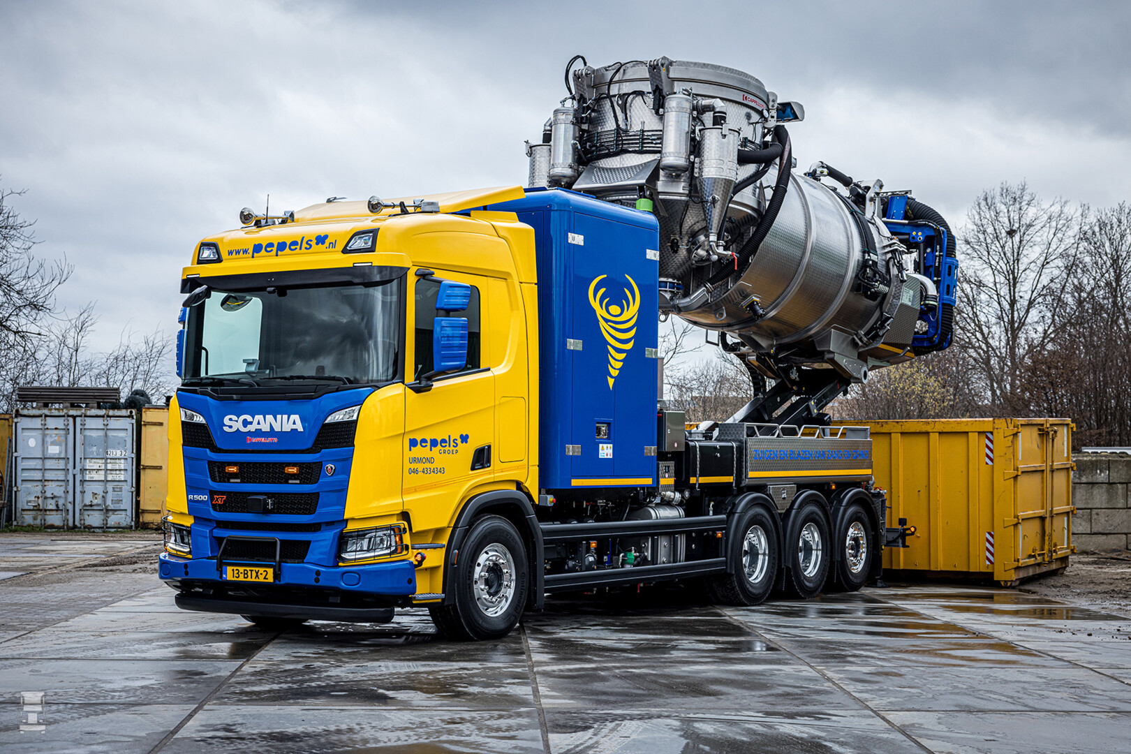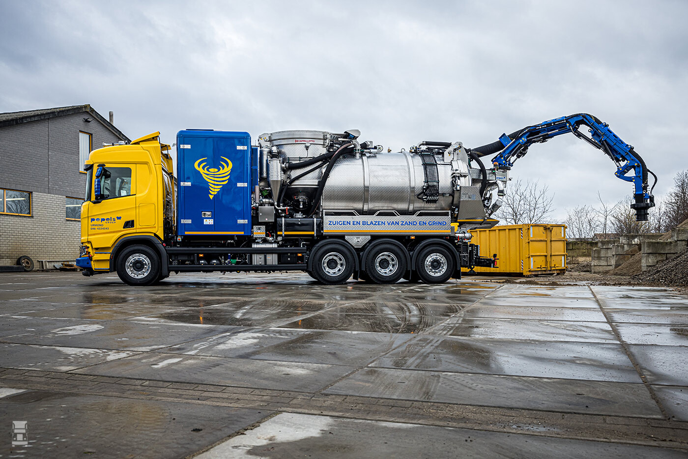 Hoewel het Pepels in eerste instantie om de installatie op de truck gaat, kiest directeur Paul Pepels ook bewust voor Scania. “En wel om meerdere redenen. Ten eerste vanwege het véél lagere brandstofverbruik tijdens het werken op de PTO. Dat is echt opzienbarend minder dan bij andere merken. Dit is de eerste vacuümzuiger die we kopen. Maar wel hebben wij al drie andere grondzuigauto’s waarbij de techniek gebaseerd is op een ventilatortechniek. De installaties op die trucks zijn bijna identiek, het merk truck eronder niet. We hebben geleerd dat onder gelijke werkomstandigheden, de Scania op de PTO per draaidag minimaal 35 liter brandstof minder verbruikt dan onze andere auto’s. Onze grondzuiger trucks maken nauwelijks wegkilometers. Gemiddeld amper 5.000 kilometer per jaar. Maar ze staan uren achtereen op een bouwlocatie op de PTO te draaien. Dan scheelt minimaal 35 tot zelfs 50 liter per dag substantieel op onze brandstofkosten.”