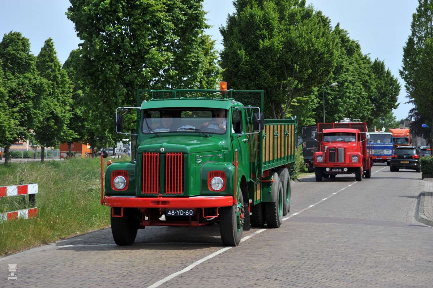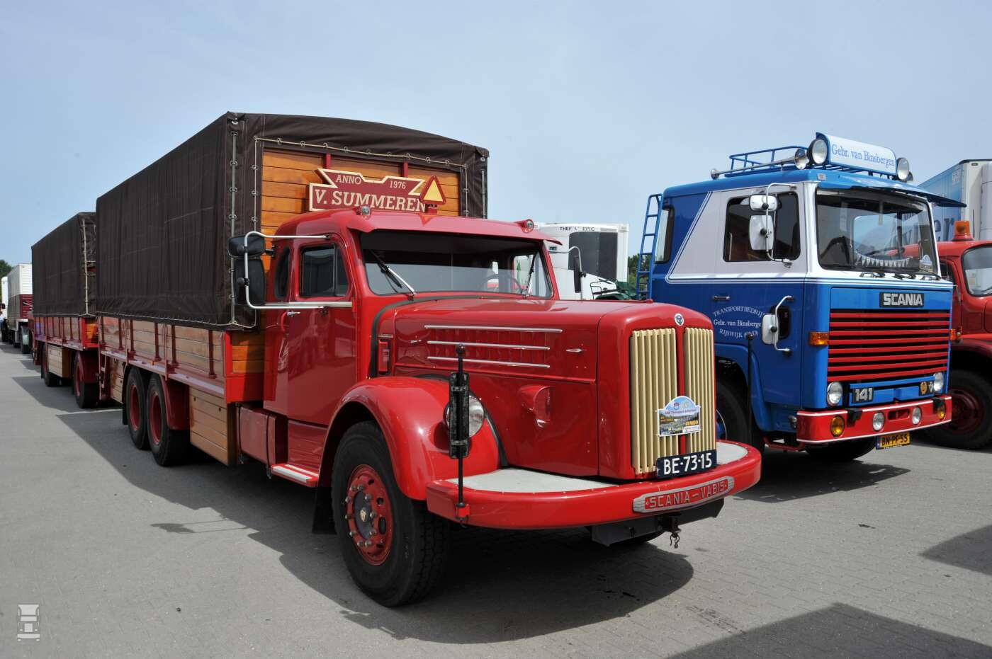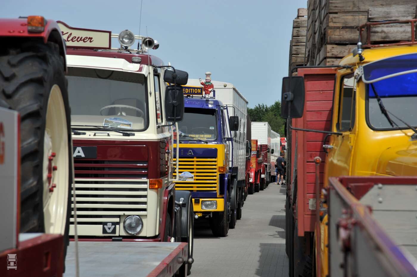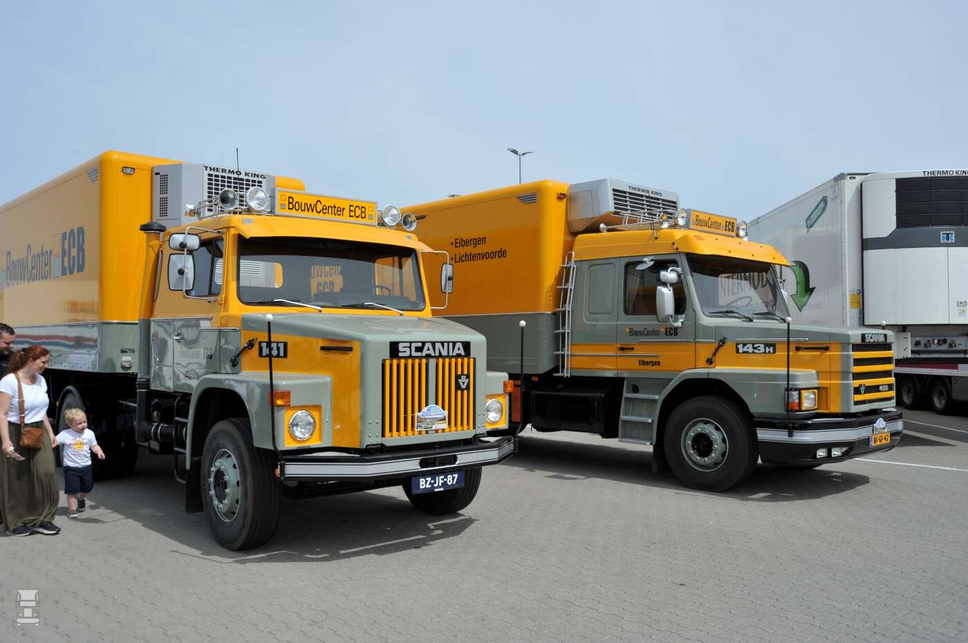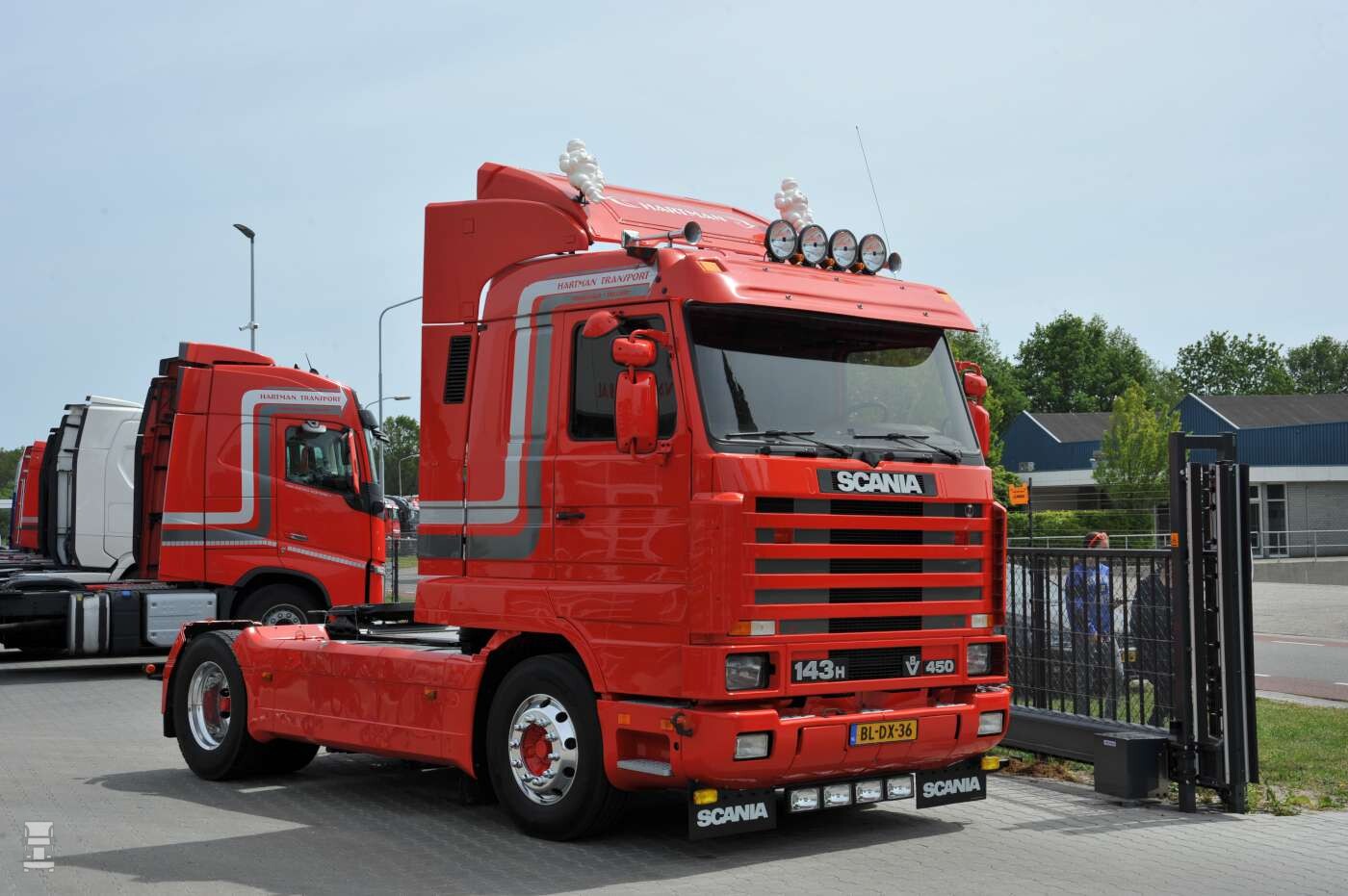 Hoewel er heel veel Scania’s meereden waren er ook opvallende verschijningen, zoals oude Mercedes trucks, een prachtige Chevrolet bakwagen, en Mack en de nodige oude DAF trucks. Bij Hartman stonden de eigen klassiekers opgesteld van het bedrijf, namelijk een DAF 3300 Space Cab, een prachtige Scania 141 sleepas trekker en een hele fraaie Scania 143 450.