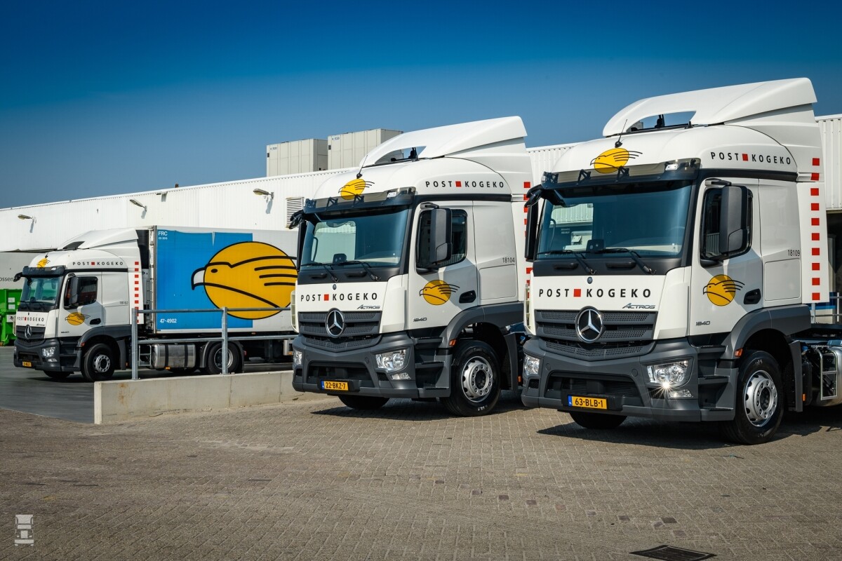 De bekende vervoerder Post-Kogeko uit Maasdijk heeft het wagenpark uitgebreid met 19 nieuwe Mercedes Actros 1840 LS trucks. De specialist in levensmiddelendistributie heeft zich na enkele jaren opnieuw georiënteerd op de truckmarkt. Mercedes-Benz overtuigde op het gebied van een aantrekkelijke Total Cost of Ownership (TCO), bewezen betrouwbaarheid en uitstraling.