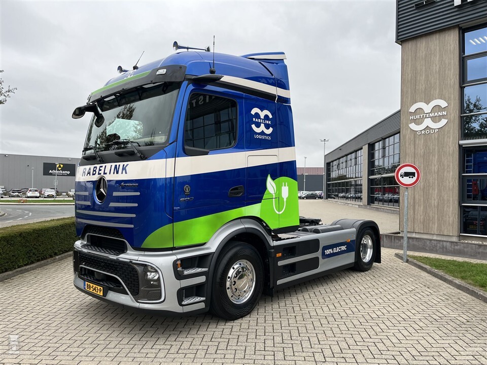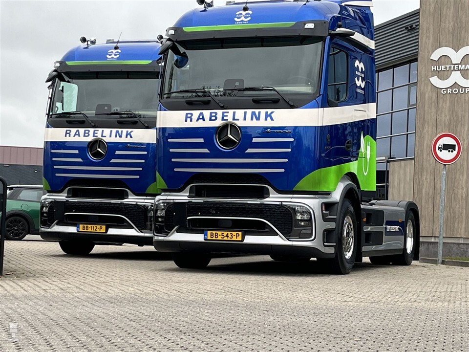 Veel chauffeurs vinden het kale, bolle front van de ProCabin een stap achteruit ten opzichte van het vorige model Actros. Zeker in het wit oogt de cabine vrij kaal. Het is daarom interessant om te zien hoe bedrijven deze ruimte invullen. We hebben al strepen en patronen gezien, maar Rabelink Logistics gaat een stapje verder. De twee nieuwe eActros 600 trekkers die het bedrijf in gebruik heeft genomen, hebben gewoon een grille.