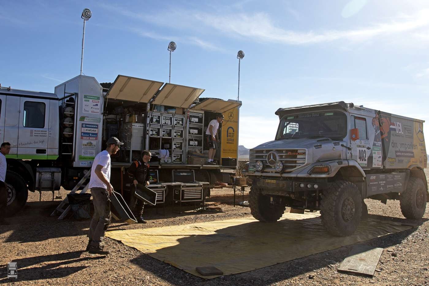 In Afrika rijdt onder andere Johan Elfrink met zijn fraaie Mercedes Zetros. Het gaat nog niet vanzelf voor Johan en Dirk Schuttel in de stoere Benz. De tweemans equipe ging als derde van start achter Tomas Tomecek en Noël Essers maar een scherpe steen maakte een einde aan de snelle opmars. Het wisselen van een band kost gewoon tijd, maar er is meer technische malheur. Zo lekt de Zetros olie, is er een motorsteun afgebroken en waren er problemen met de koeling van de stuurbekrachtiging. Alles bij elkaar wordt Johan genoodzaakt om het rustig aan te doen en daarmee lijkt de kans op een topklassering op dit moment vervlogen te zijn. In het truck klassement ligt op dit moment Tomas Tomecek op kop met zijn Tatra. De Portugese Elisabete Jacinto ligt op een tweede plaatst met haar MAN en Noël Essers rijdt op een derde plaats in het algemeen klassement.