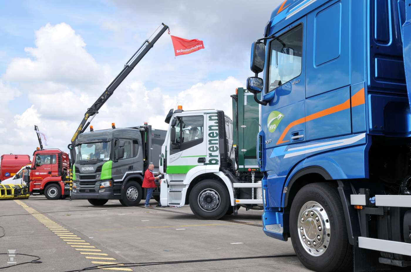 Vrijwel alle truckproducenten zetten hun duurzame spullen neer in Soesterberg en daarbij werd alles uit de kast gehaald op het gebied van duurzaamheid. Bij Scania, Iveco en Volvo veel aandacht voor LNG, en bij laatstgenoemde was ook een volledig elektrische Volvo FE bakwagen te zien. Bij DAF werd vooral het HVO geloof verkondigd terwijl bij Mercedes de aandacht uitging naar de nieuwe Actros en, uiteraard de Econic. Die truck mag toch wel als de stamvader van de lage instap trucks genoemd worden en inmiddels hebben ook Scania en Volvo dergelijke concepten in de aanbieding. Alle drie waren ze vertegenwoordigd op de gezellige en informatieve show.