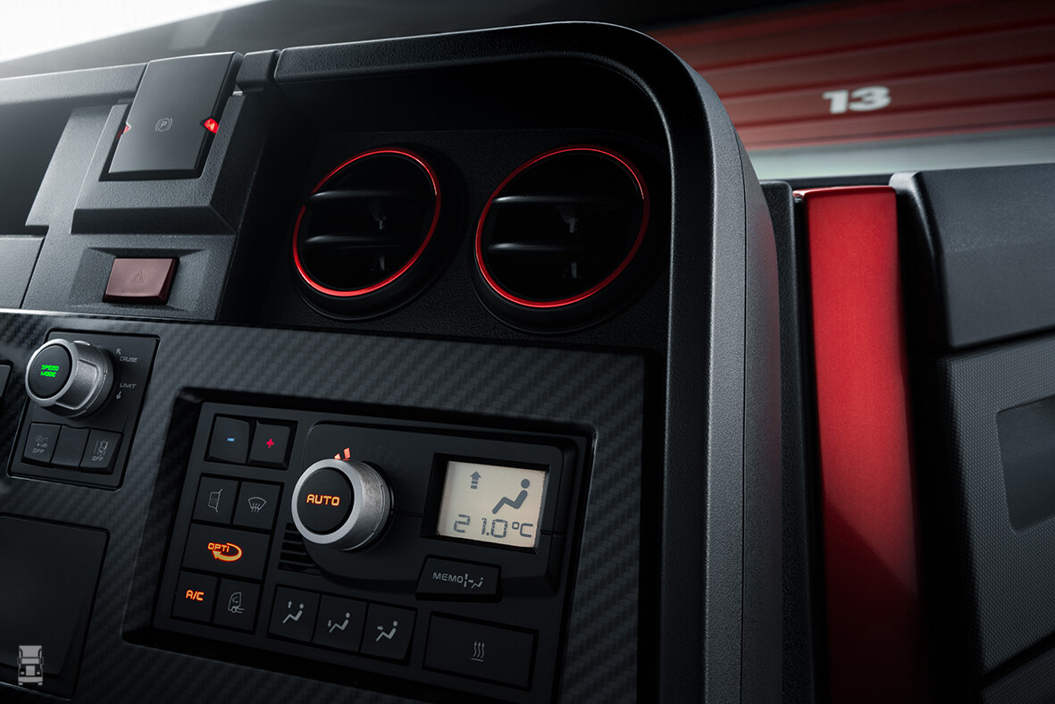 Het interieur is ook van extra’s voorzien die doen denken aan de racewereld. Zo zijn de instapbeugels ook voorzien van de speciale rode en gele kleur. De chauffeur komt vervolgens in een exclusief carbon-look interieur, in een antracietgrijze uitvoering. De opbergruimten zijn voorzien van rode handgrepen. Tot slot zijn er verschillende opties mogelijk op het gebied van aanvullende carbon-elementen, LED-lichtaccessoires, luchthoorns of specifiek spuitwerk. Wat al dit moois doet met de prijs van zo'n gebruikte truck vermeldt het bericht niet.