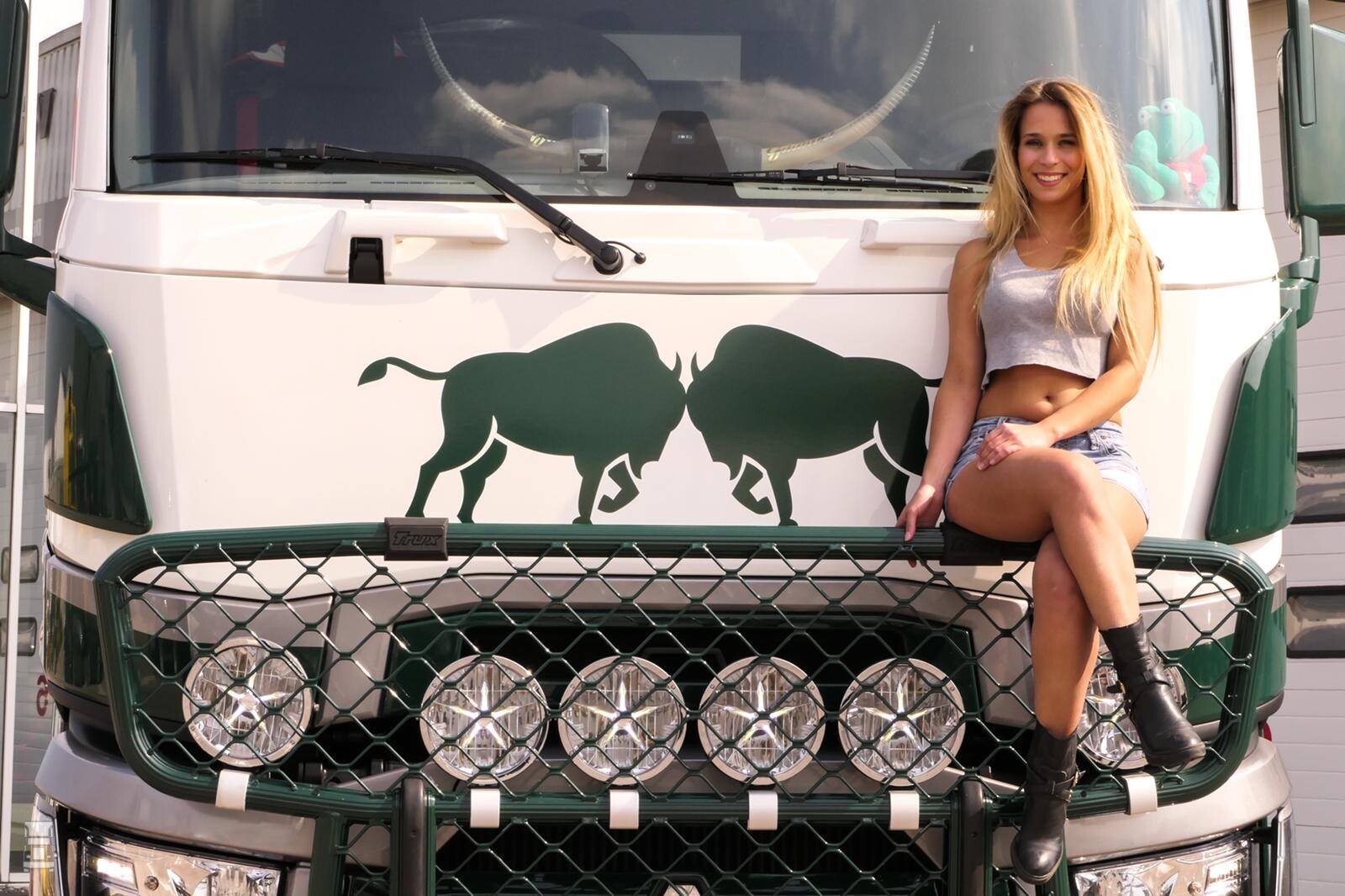 Tijdens de BIGtruck Trophy zal komend weekend ook deze opvallende Renault T van Bull Pallets te zien zijn. Of de aantrekkelijke jongedame op de foto ook mee komt is ons niet bekend maar voor de zekerheid hebben we ook ons eigen promotieteam uitgenodigd.