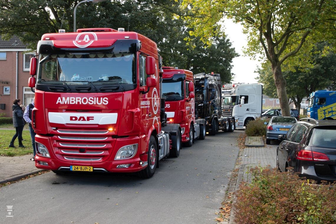 Enrico en de familie stapten na de begroeting in de gereed staande trucks en het konvooi reed al toeterend de straat uit, uitgezwaaid door de buurtjes en vrienden. De route liep via Ambrosius waar de rest van de collega’s zich bij het konvooi voegde. De stoet reed langs de brandweerkazerne van Hoogeveen en de brandweerlieden stonden in het uniform voor de brandweerauto’s opgelijnd, jong en oud respect tonen aan Enrico en zijn familie. De familie heeft een speciale band met de brandweer, die speciale band loopt als een rode draad door het gezin heen. De gezinsleden zijn hier vrijwilligers geweest of zijn het nog steeds, het kippenvel stond bij het passeren dik op de armen van iedereen, dank!