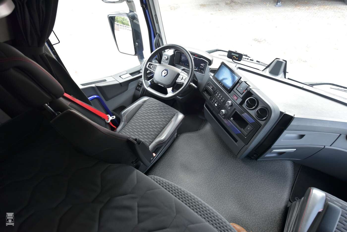 Eerlijk is eerlijk, de Renault E-Tech T is een mooie vrachtwagen. Waar andere merken drastische wijzigingen hebben gemaakt aan de cabine om hem gestroomlijnd te maken, heeft Renault het simpel gehouden. De E-Tech voldoet wel degelijk aan nieuwe Europese regels, waarmee de combinatie langer mag zijn. Alleen aan de iets uitstekende bumper zie je dit. Het front steekt veel minder ver naar voren dan bij de Volvo FH Aero, en dat kan doordat de T-cabine van zichzelf al meer gestroomlijnd is dan de Volvo. Het resultaat is een stoere vrachtwagen, die er vergeleken met de concurrentie helemaal niet verkeerd uitziet, zeker in de mooie kleur blauw van onze test-trekker.