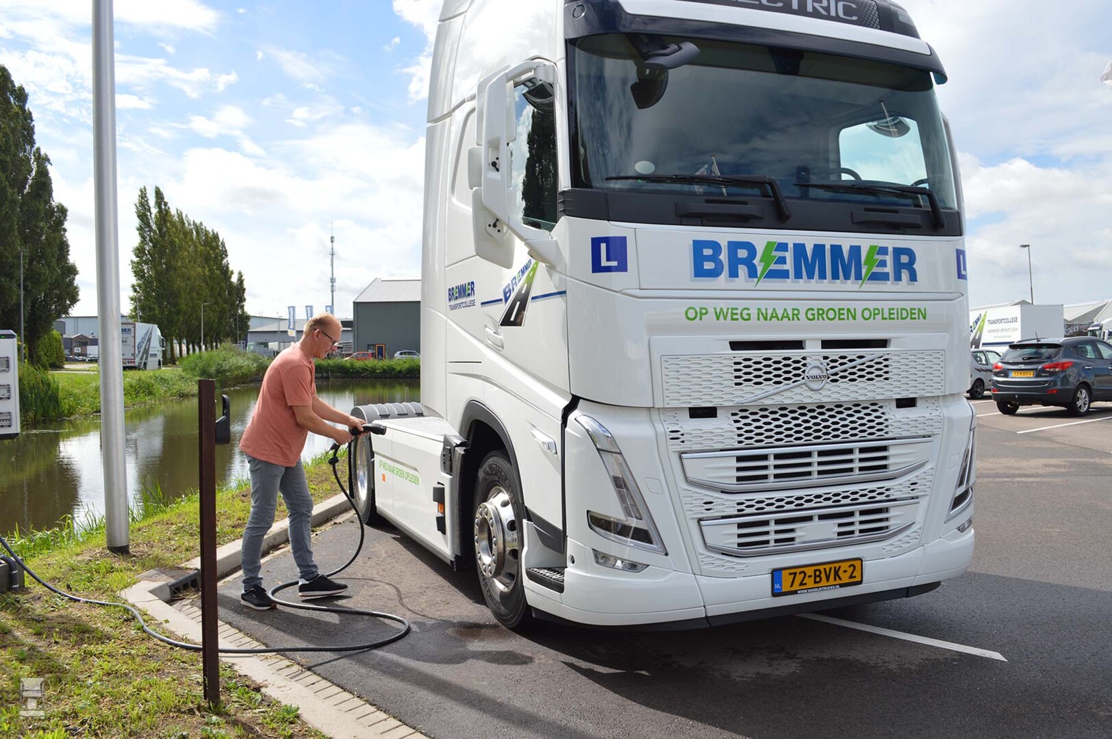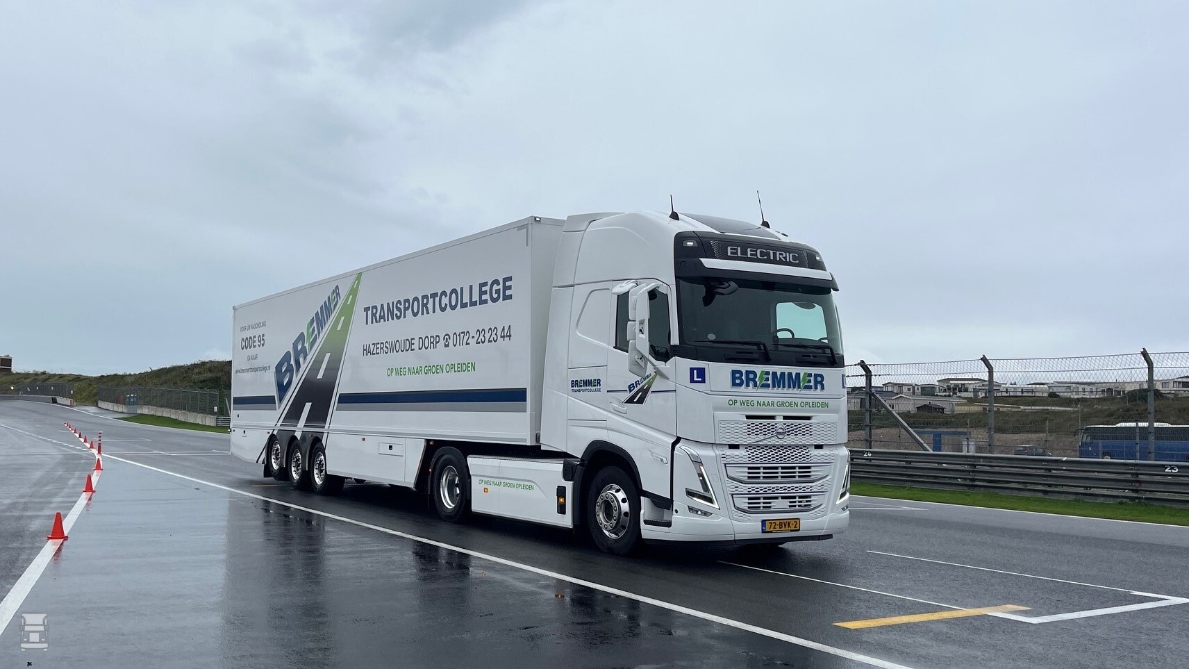 “Wij werken veel voor overheidsinstanties, zoals gemeenten en provincies. Waar voorheen kwaliteit en prijs leidend waren in de rijopleiding-tenders, staat nu vergroening bovenaan. Met de aanschaf van deze Volvo FH 4x2 Electric-trekker, zijn wij de weg ingeslagen naar ‘groen’ opleiden”, zegt Wout Bremmer, directeur van Bremmer Transportcollege BV. “Via de Rijksdienst voor het Wegverkeer en het Centraal Bureau Rijvaardigheid (CBR) hebben wij begrepen dat wij de allereerste elektrische lestruck van Nederland en misschien zelfs ter wereld in gebruik hebben genomen”, zegt Bremmer trots.