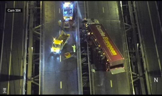 De 54 jarige chauffeur reed met zijn Scania trekker met een Curries European oplegger de brug op ondanks het rijverbod. De wind kreeg vat op de combinatie en blies het hele spul omver. Als gevolg hiervan moest de volledige brug in twee richtingen worden afgesloten tijdens de berging.