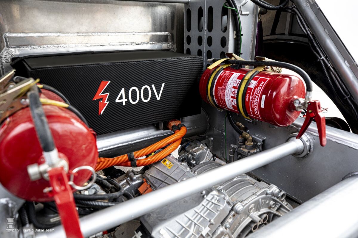Een aantal weken geleden werd er door het team getest op harde en snelle ondergrond in Frankrijk. Deze testdagen waren belangrijk omdat het een geheel nieuwe truck is en alles goed afgesteld moest worden. Zo is de gewichtsverhouding geheel anders dan in een normale rallytruck. “De truck is nu goed afgesteld en aan pittige tests onderworpen. Tijdens het afstellen van de accu en de elektromotor is goed gekeken naar de veiligheid. Dat is het allerbelangrijkste. Er zijn zoveel veiligheidsfactoren ingebouwd dat er niets mis kan gaan. Als de accu te warm of te koud wordt, schakelt het systeem automatisch uit. Dat geldt ook als er ergens kortsluiting zou ontstaan. In de accu zit een speciale gel die ervoor zorgt dat de accu niet kan ontbranden. Ook wanneer er in de cabine twijfels zouden zijn kan het systeem met een noodknop uitgeschakeld worden. Alle veiligheidsmaatregelen zijn genomen om te voorkomen dat er iets zou kunnen gebeuren met de 400V accu.