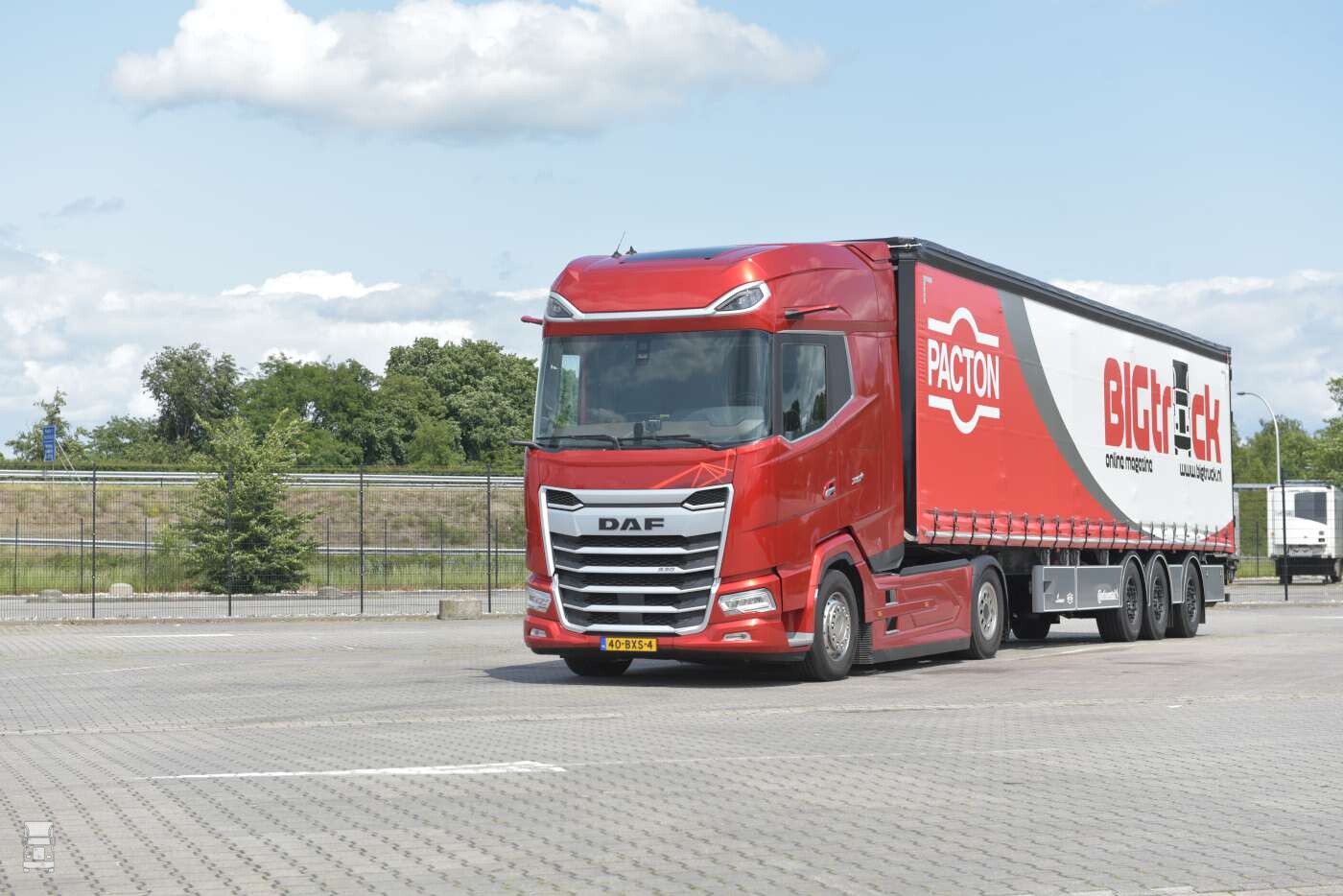 Toch haalde de DAF dat verbruik niet tijdens testrit met onze eigen Pacton testoplegger. Met 24,01 liter op 100 kilometer bleef hij steken op één op vier en een beetje, maar dat had alles te maken met het weer. Nat wegdek, regen en harde wind waren de spelbrekers tijdens de rit. Dat is jammer, want toen wij exact dezelfde truck terug reden vanuit het Spaanse Malaga haalden we de één op vijf wel degelijk. Ook toen reden we met 40 ton en een snelheid van rond de 85 km per uur.