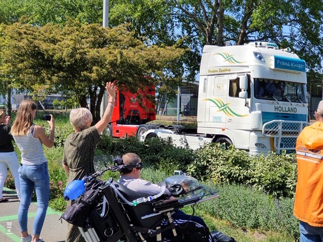 Door het Corona virus komt de gehandicapte Robin maar amper de deur uit en evenementen zijn er gewoon niet. Voor Robin zijn het dan ook zware tijden want het hele evenementen seizoen valt in het water, en daarmee zijn hobby. Voor een groep chauffeurs reden om eens stevig uit te pakken. Speciaal voor Robin organiseerde deze groep collega's een rondrit langs Robin. Die zat zichtbaar te genieten in zijn rolstoel van deze enorme verrassing. Binnenkort verschijnt er een leuke video van deze dag, maar hier alvast een aantal foto's die we kregen via The Showtruck Channel!